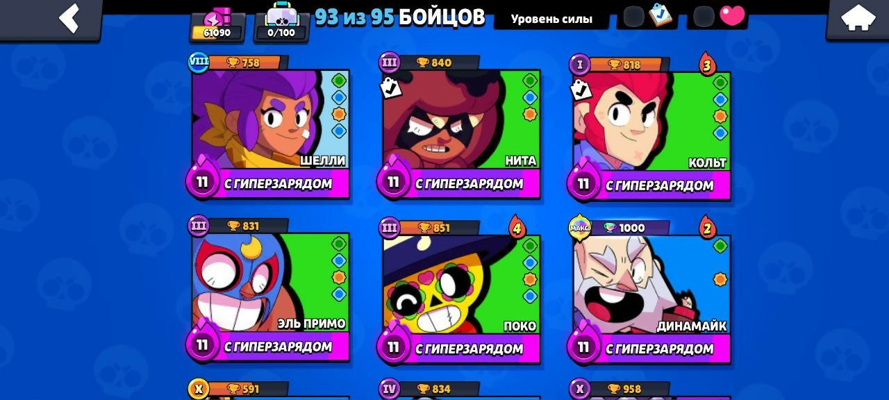 ✨Big Discount✨✨️SUPER OLD ACCOUNT✨️✨8 BP✨✨61000✨✨93 of 95✨SKINS FOR 22K GEMS✨225 SKINS✨✨37 - 11 STRENGTH✨, trophies 61090, brawlers 93