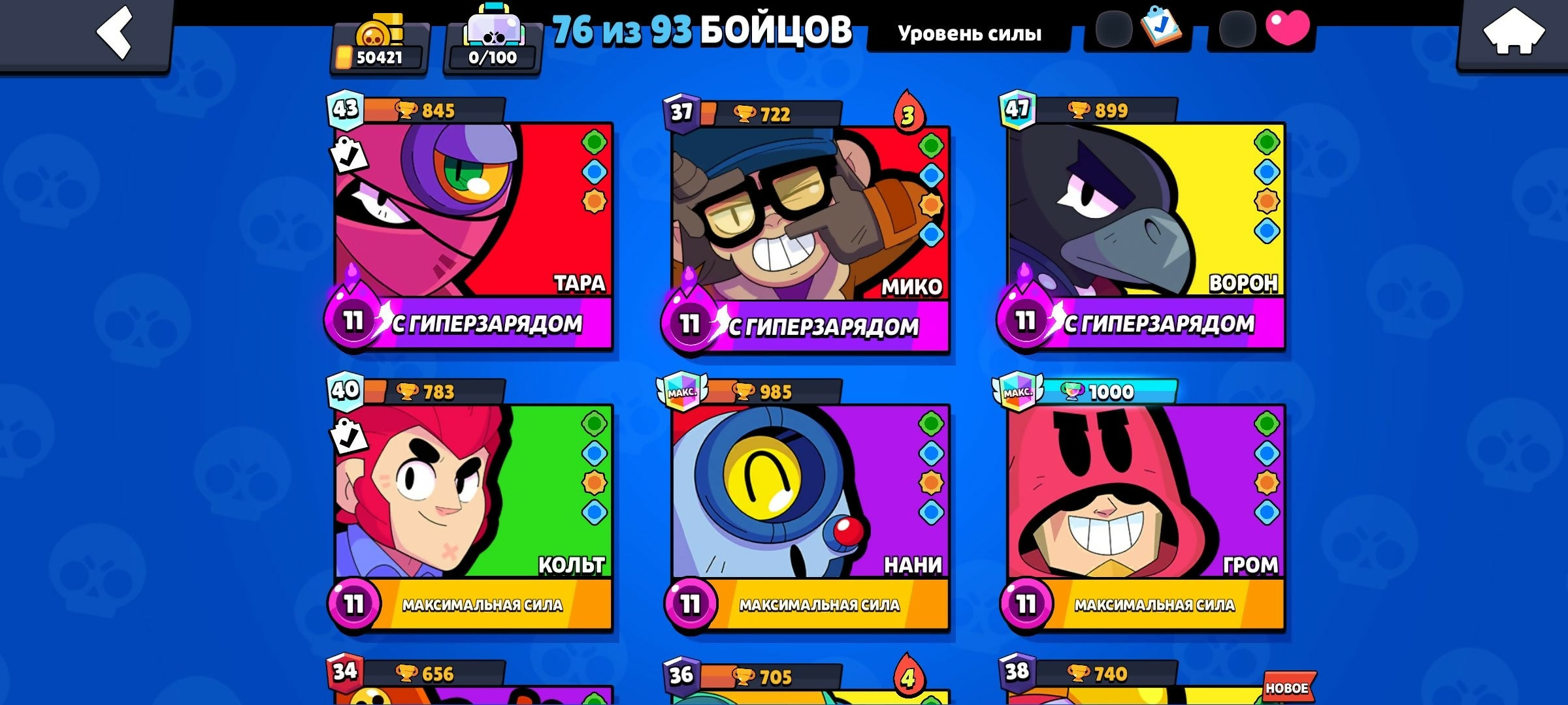 ✨Big Discount✨✨ 76 out of 3✨✨50421✨135+ SKINS✨✨8 HYPER SKINS✨CLICKER GALE✨️✨️Turtle GALE, trophies 50421, brawlers 76