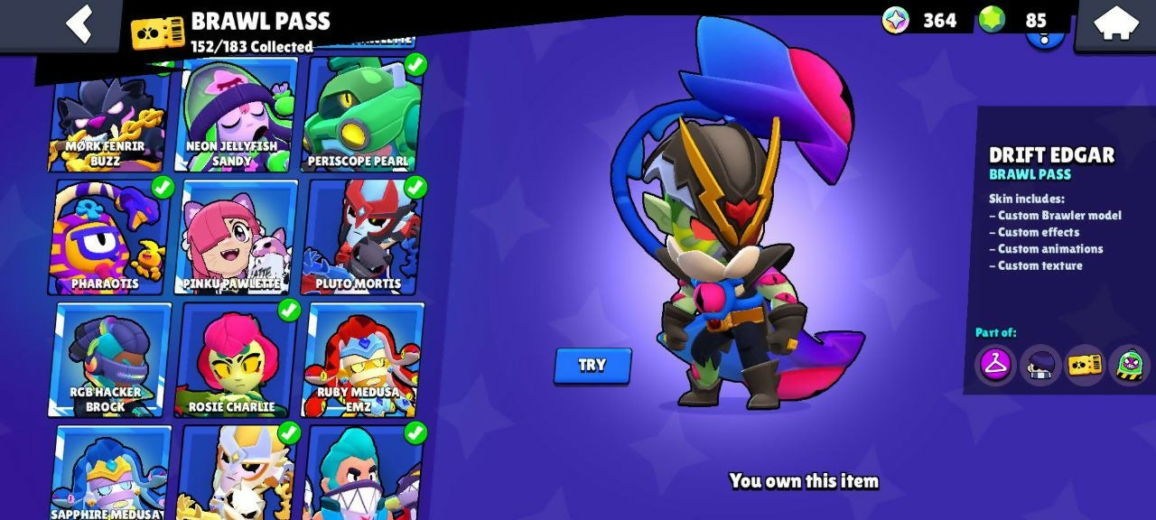✨Big Discount✨✨ 78278✨ ✨ ✨ 2 FULL PRO-PASS + 15 BP ✨ ✨️ 31 TITLES + 11 LEG + 12 MYTH + 122 EPIC SKINS ✨️44 x 11P ✨, trophies 78278, brawlers 94