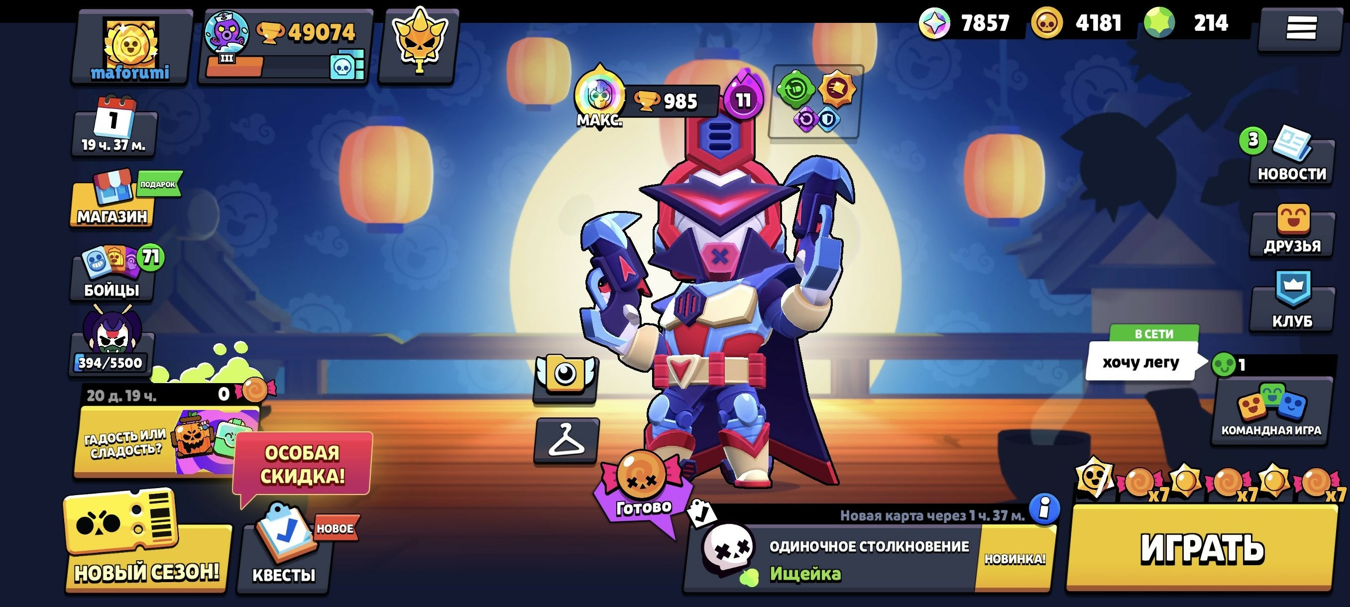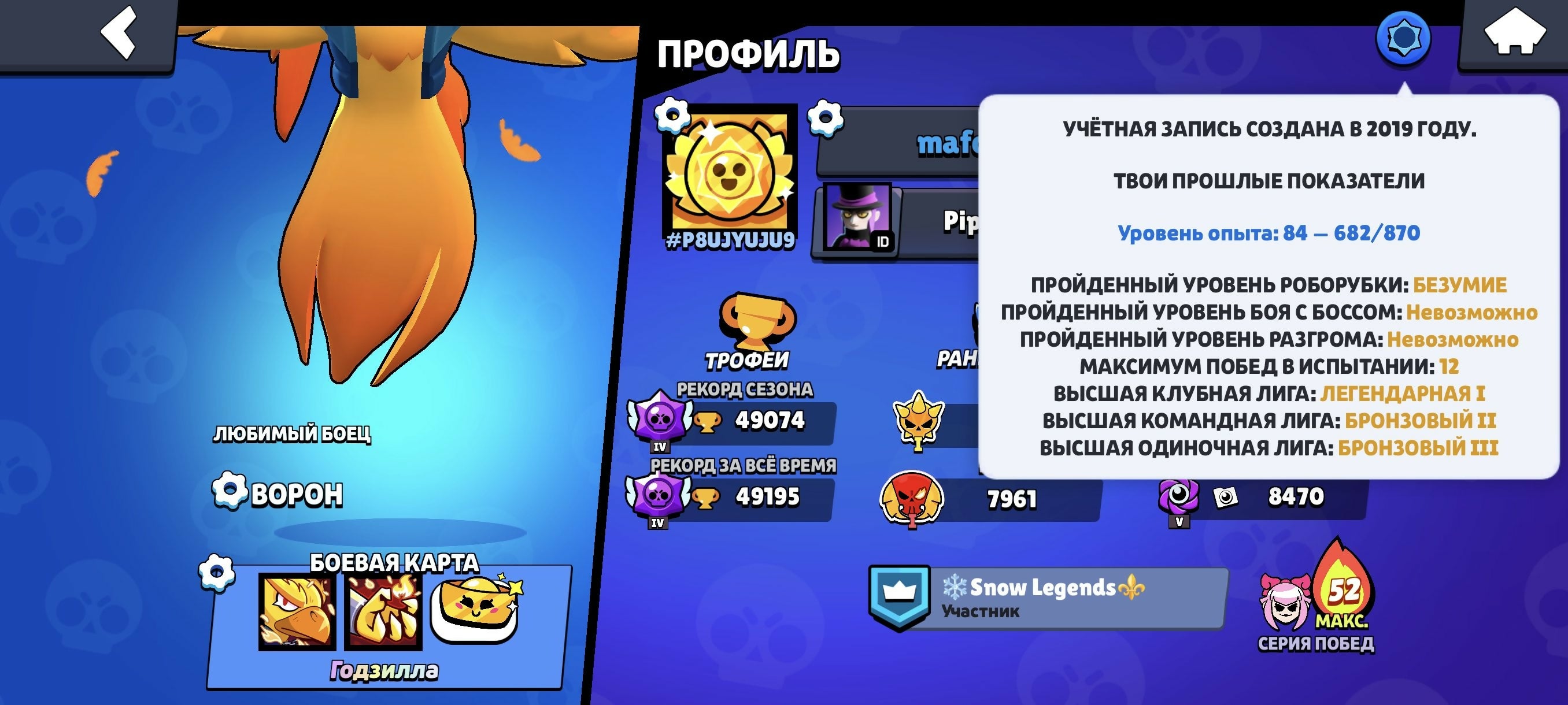 ✨Big Discount✨✨ 92 out of 5✨✨49074✨✨160+ SKINS✨✨TIK-MECHA✨✨FURIOUS FANG✨️✨️20 WITH 11 POWER, trophies 49074, brawlers 92