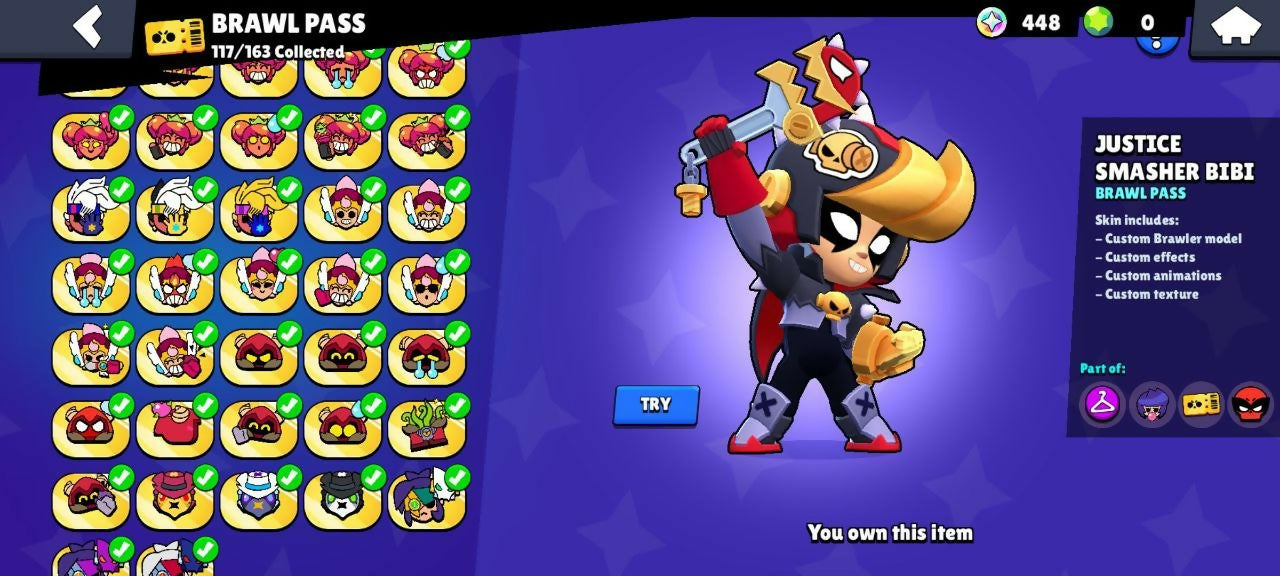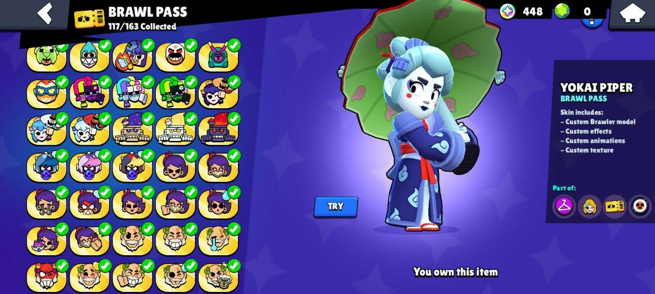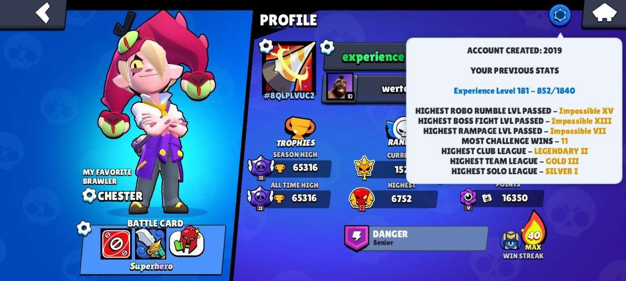 ✨Big Discount✨✨65316✨✨95/95✨✨12 BP + COLT PRO PASS✨✨302 SKINS (ON 31K GEMS)✨✨️61 x 11 POW✨️, trophies 65316, brawlers 95