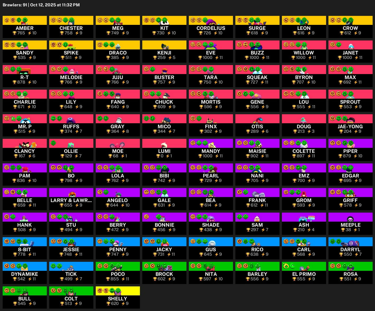 | Max Level Brawlers | N/A |