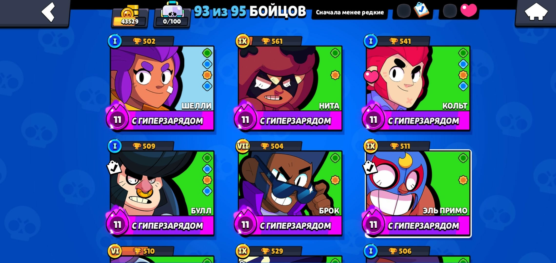 ✨Big Discount✨✨[AUTO-DISTRIBUTION]✨43,529 cups✨✨93 out of 95✨✨SKINS~ 19.3K✨234 SKINS✨40-11 STRENGTH✨✨Video review✨, trophies 43529, brawlers 93