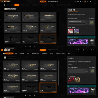 ✨ Warzone 13 Diamond Camos ⭐ 13 Gold Camos 130 Total Camos AR’s & SMG’s Diamond Level 55 Linkable to Steam / Battle.net / Xbox / PSN