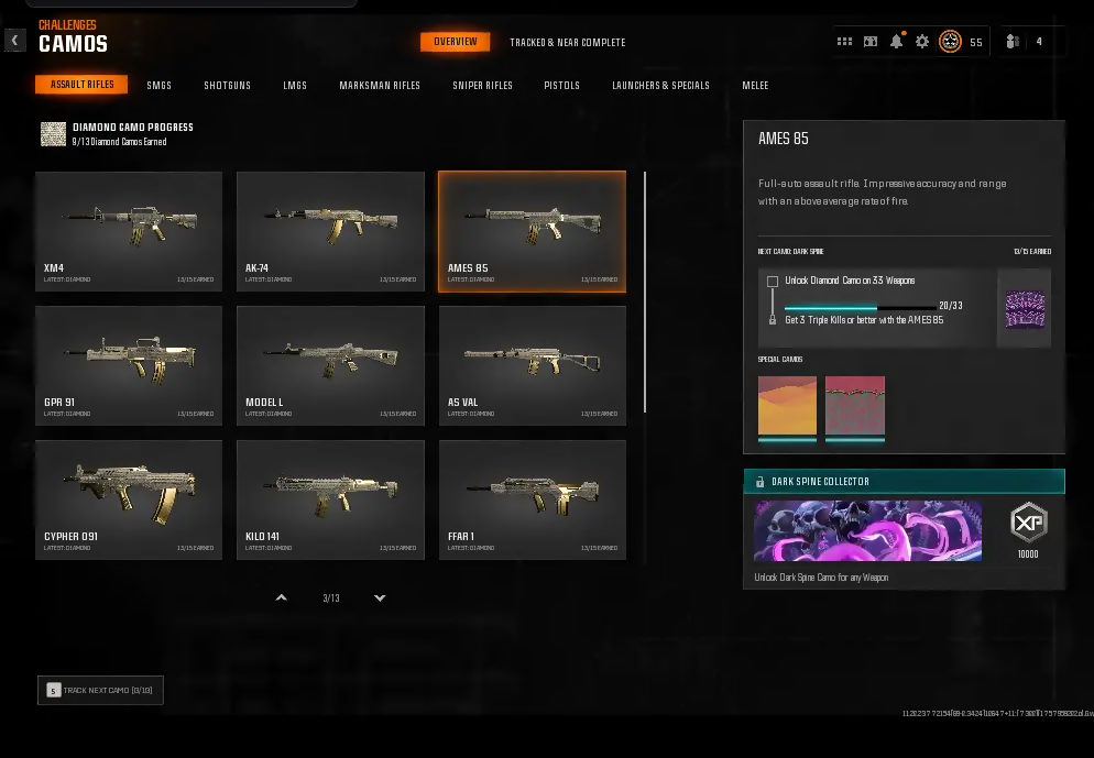 22 Diamond Camos +【✔ Level 55 + 50 Wins 】[RFR] BO6 / WZ4