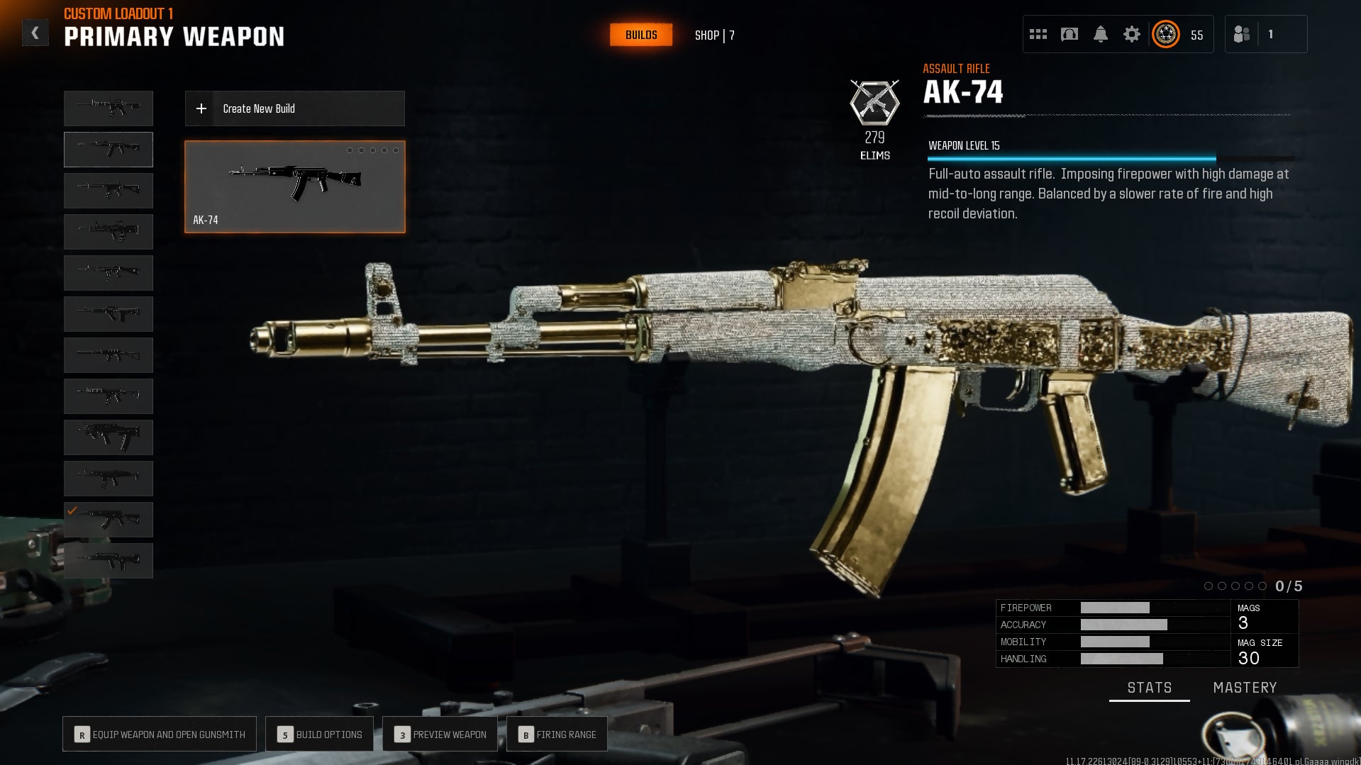⭐ 13 Diamond and Gold on : XM4/ AK-74 / AMES-85 / GPR-91 / MODEL-L / GOBLIN-MK2 / AS-VAL / C9 / KSV / TANTO.22 / PP-919 / JACKAL-PDW / KOMPAKT-92