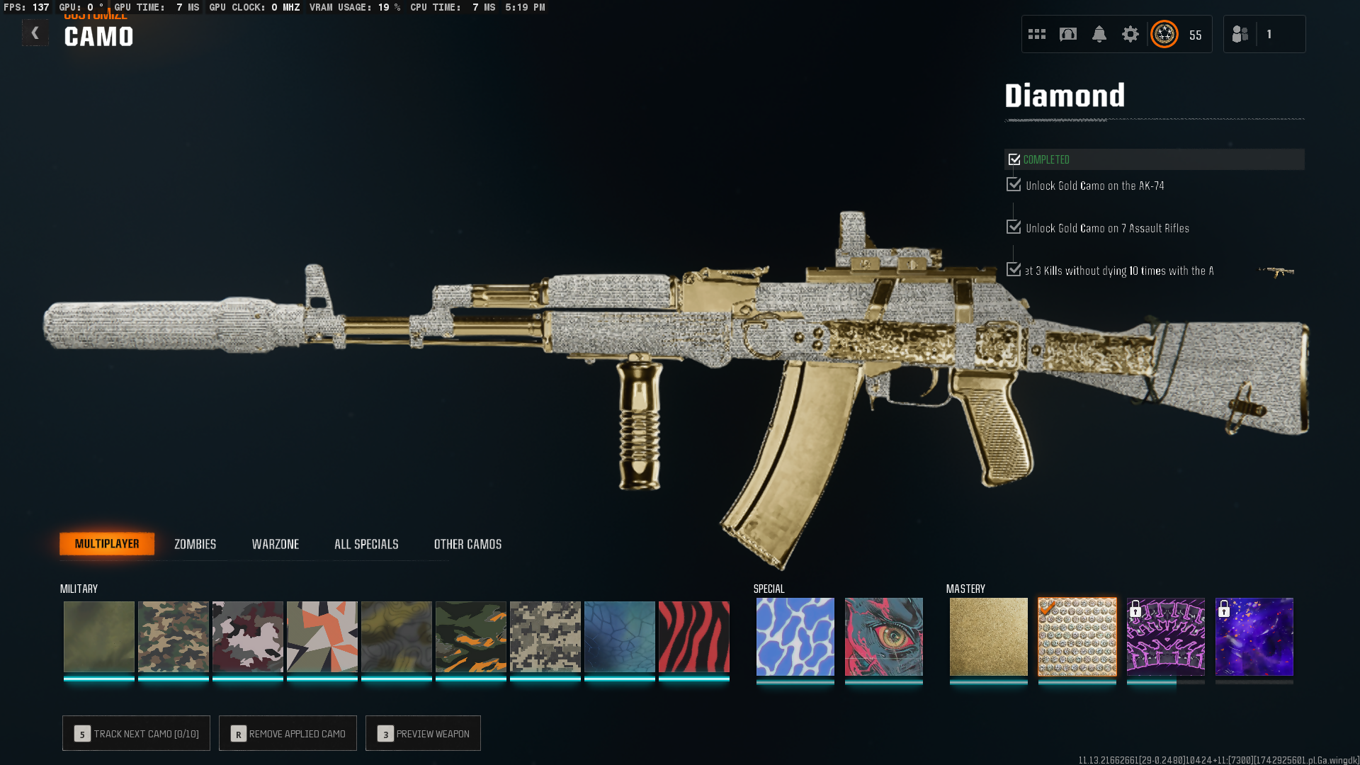 โ 13x Diamond Camos โ ARs & SMGs unlocked ๐