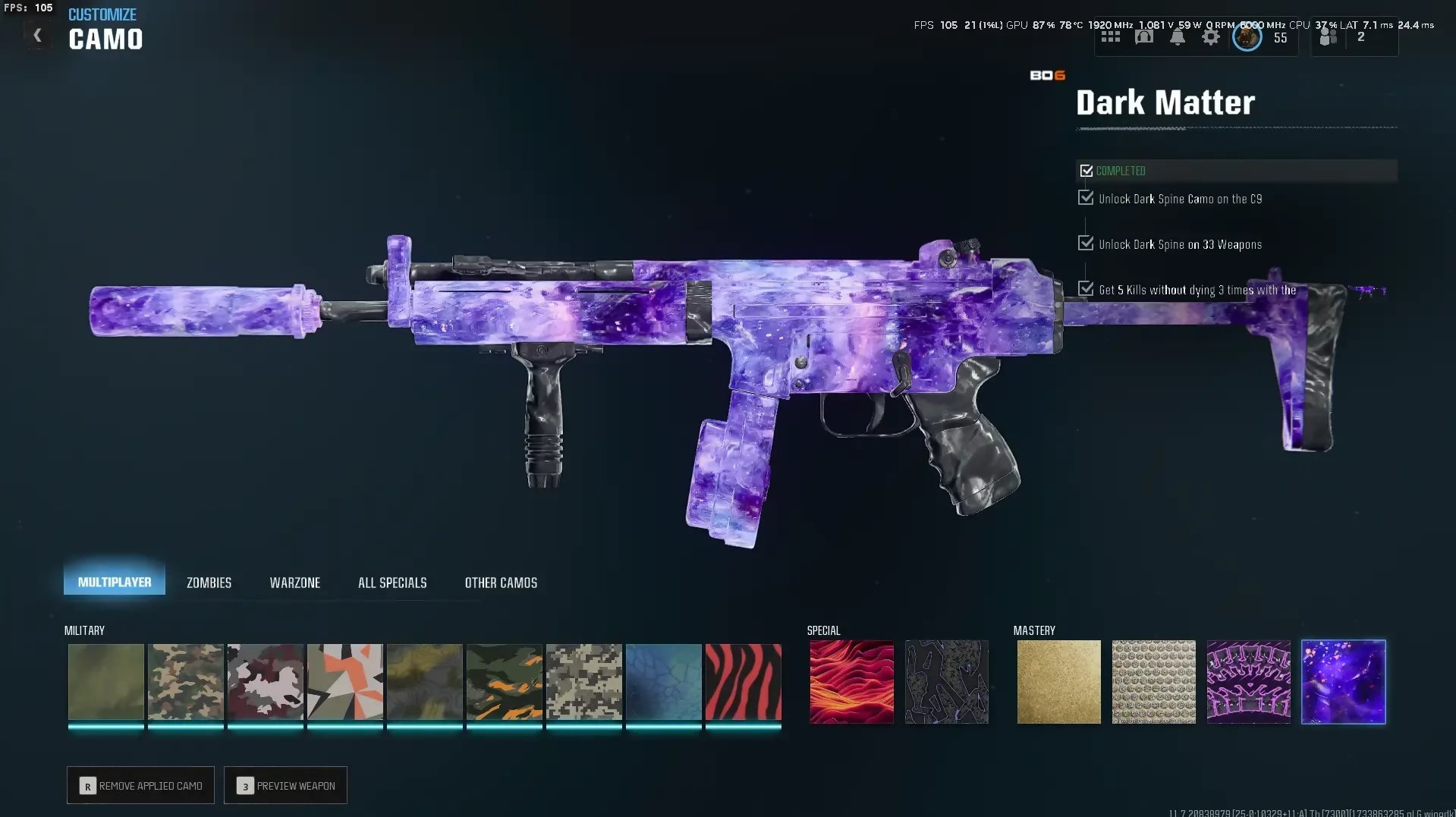 【? 33/33 Dark Matter Camo 】✅ 100% Legit ✅ 16 Operators ? All Multiplayer Camos Unlocked ? Level 55 + Prestige 1 ⚡ Fully Legit Unlocked