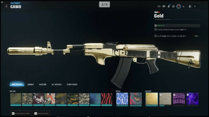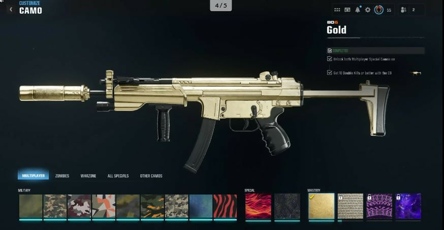 🔫 3–6 Gold Camo Weapons – Fully unlocked, ready to dominate
