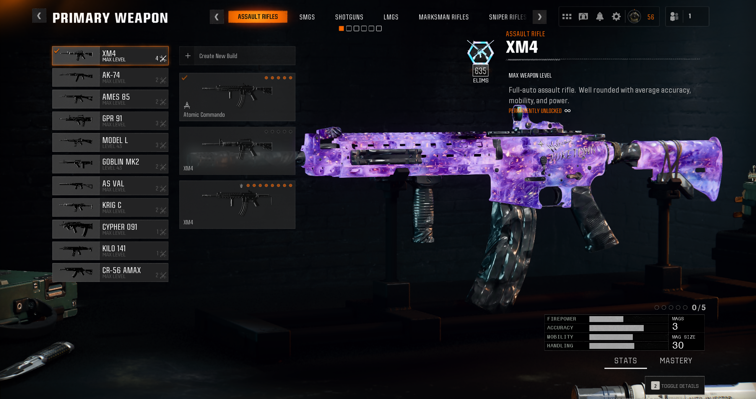 All ARs, SMGs, LMGs, 5 Marksman Rifles and 2 Shotguns