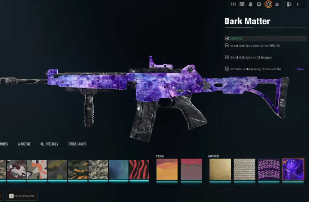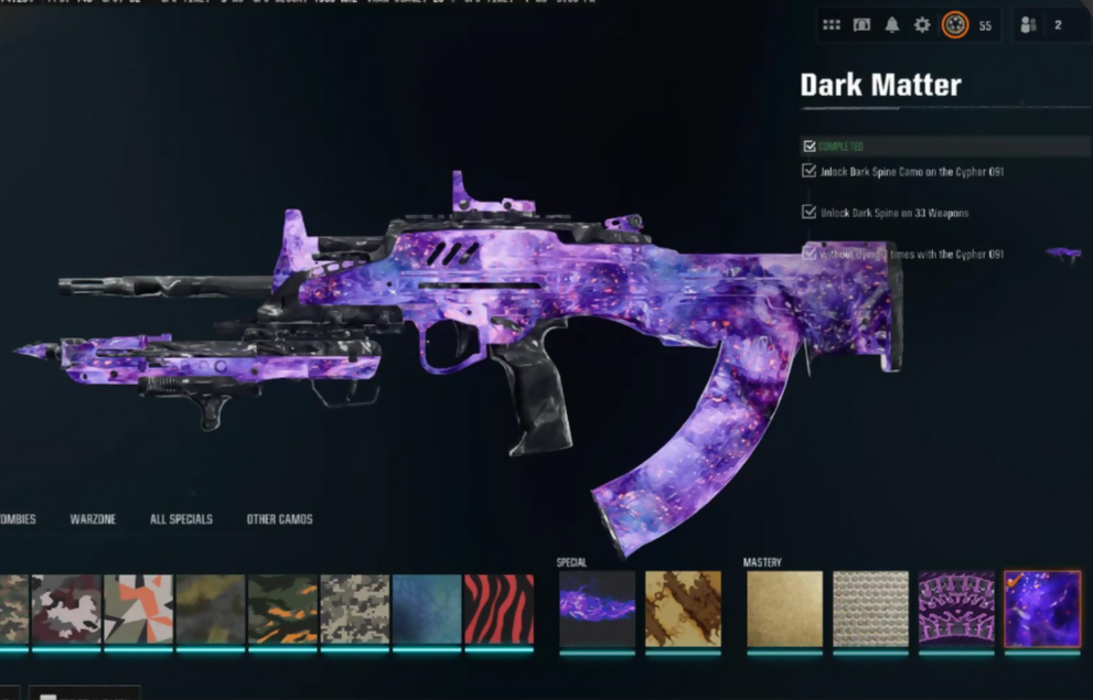 【 Dark Matter + Prestige Master 】 ⚔ All Multiplayer Camos Unlocked ✨ Prestige Master ⚡ Dark Matter Legit Unlocked on 33 Black Ops 6 Guns ⚡ Linkable to STEAM / BNET / XBOX / PSN