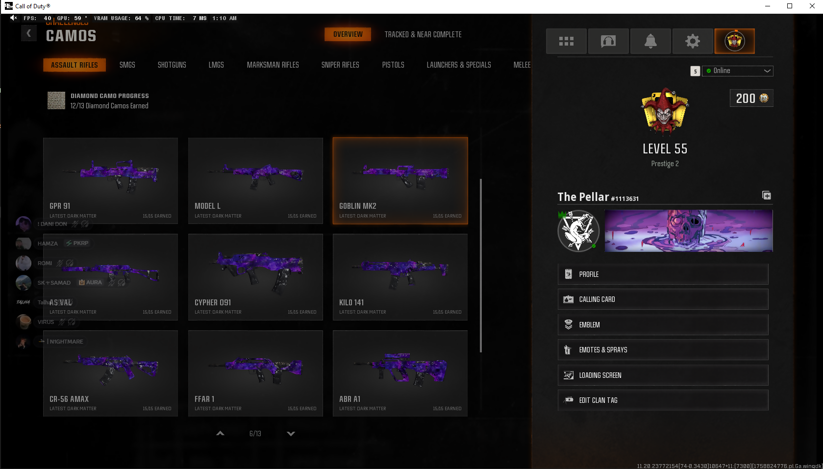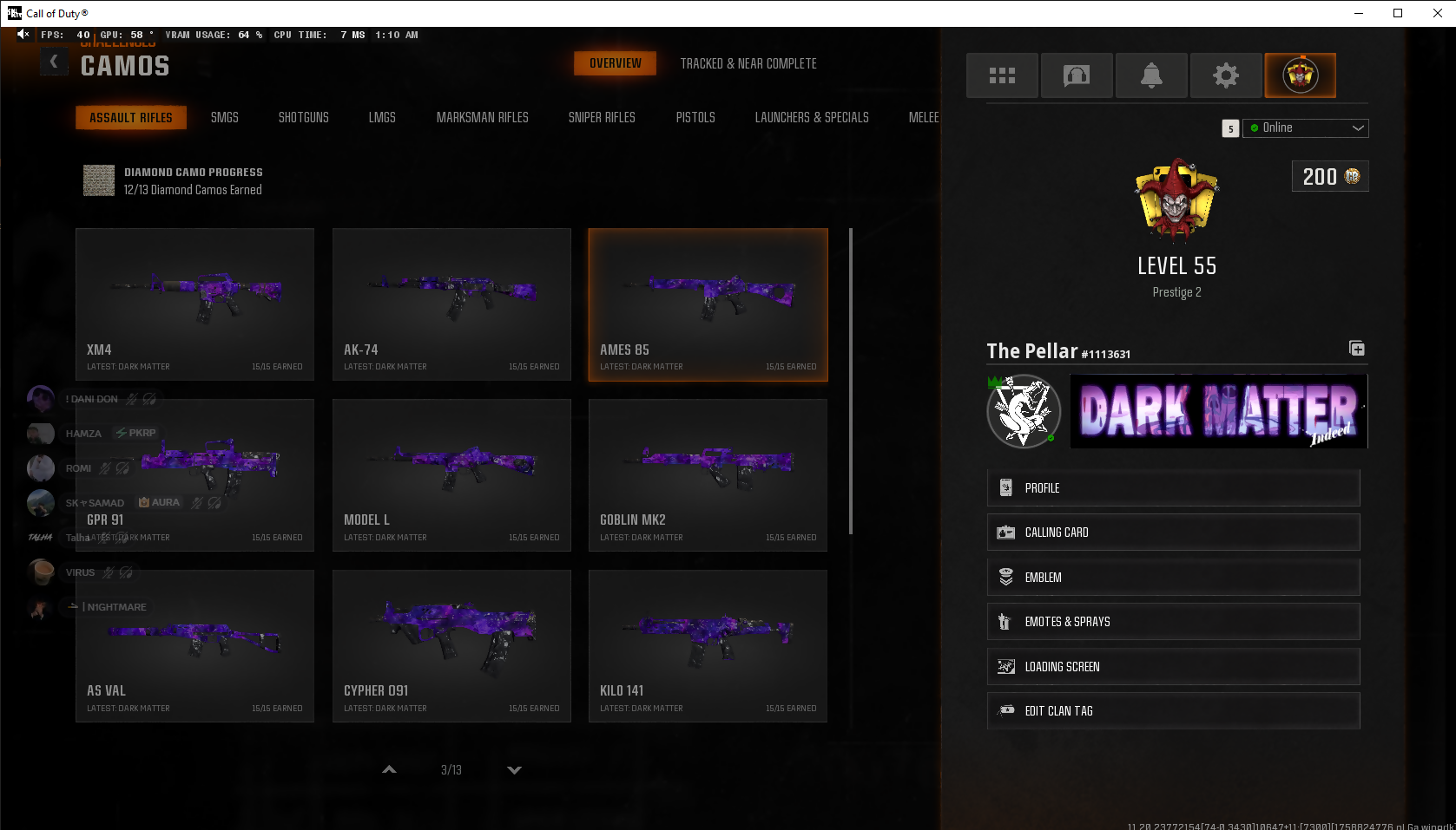 ♛ Prestige 2 ✯ 40Guns DARK MATTER ✯ 50 Wins ✯ Linkable To ✯ Steam ✯ Battle.Net ✯ PSN ✯
