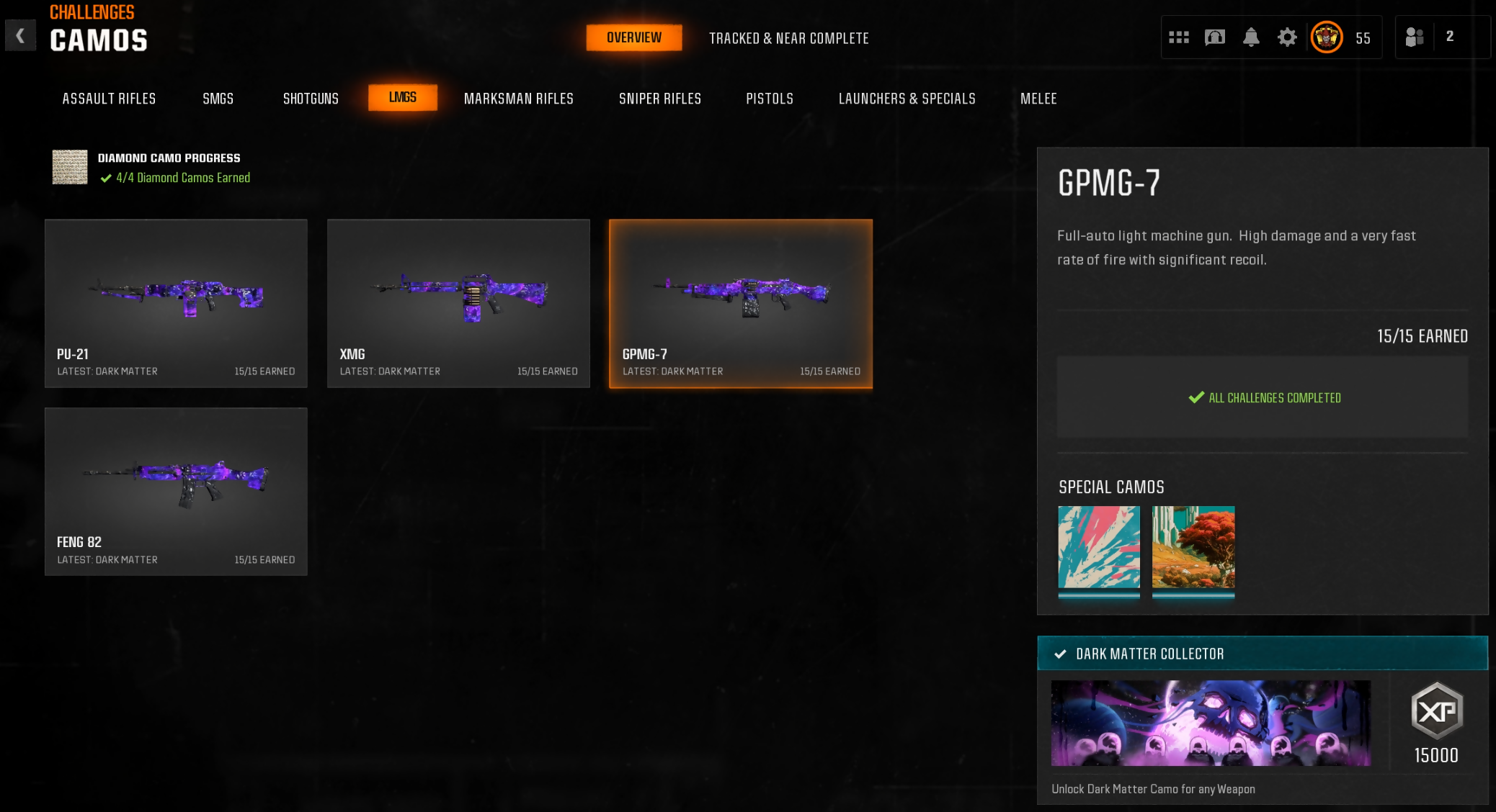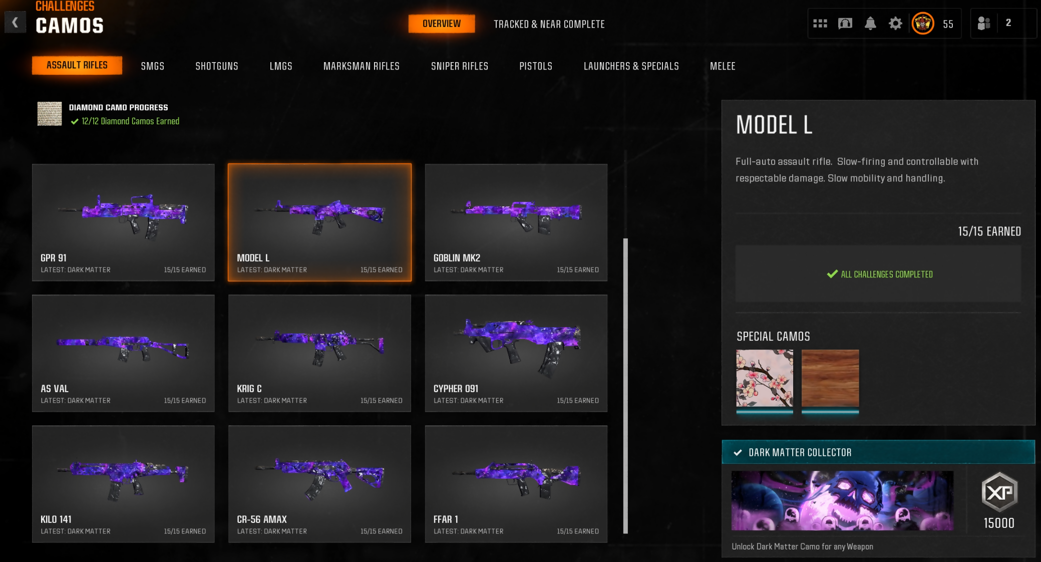 All Base Camos Unlocked : Military, Special, Gold, Diamond, Dark Spine