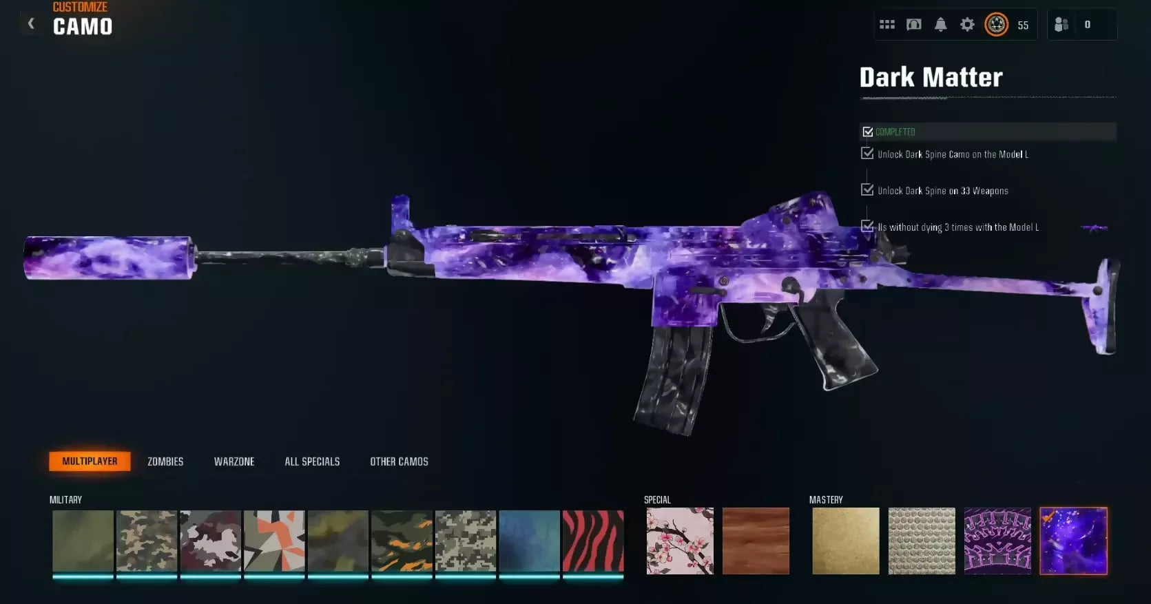 ✔ [ Gold + Diamond + Dark Spine + Dark Matter ] Unlocked on all Bo6 Guns