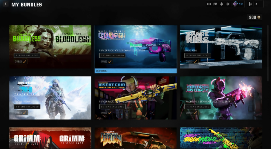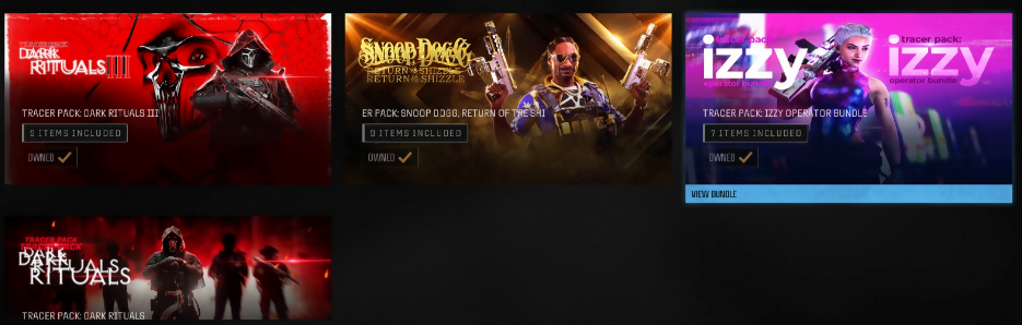 Owned Bundles : Bloodless • Wildlife Wanted: Goofish • Spare Ribs • Godzilla × Kong • Insert Coin Mastercraft • Echo Endo Ecstatic Entropy • Grimm (Tracer + Operator) • DOOM • Misprint Solid Gold • Dark Rituals I & III • Snoop Dogg (Return of the Shizzle) • Izzy Operator