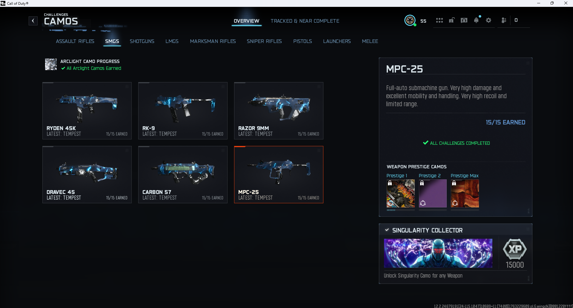 ⚡30 Singularity Camos – Fully unlocked & ready to use