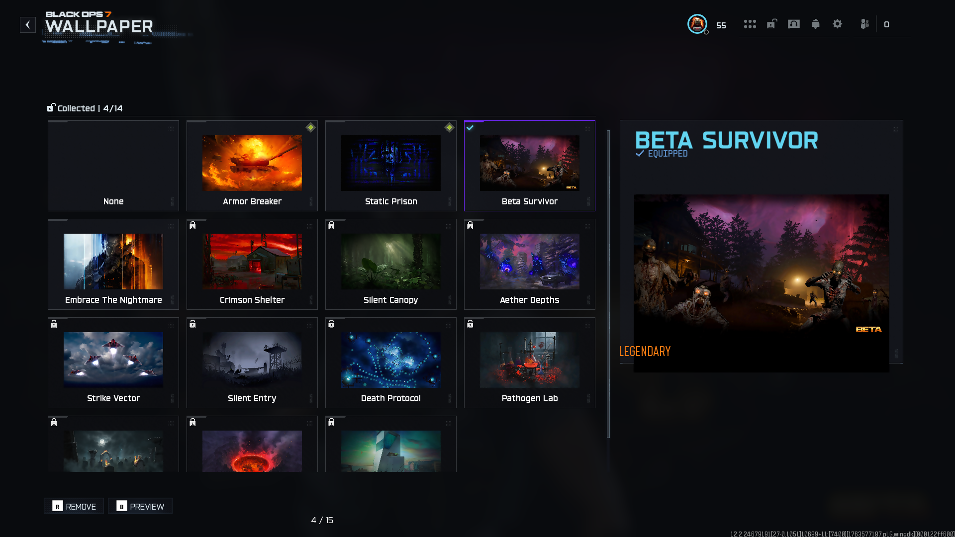 • 4 Wallpaper (Beta survivor included)