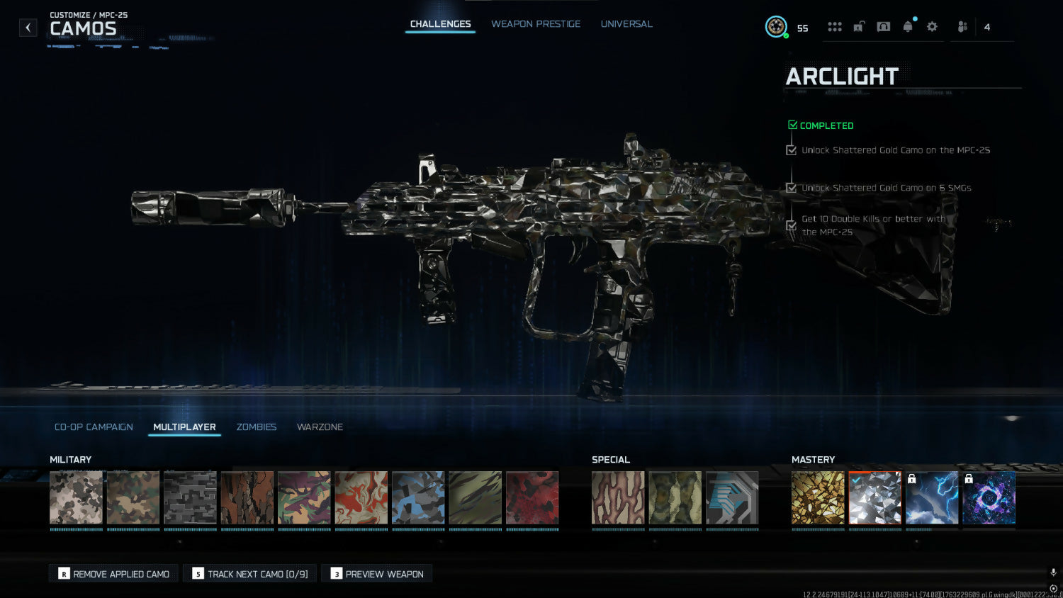 BO7 🔥 12 Arclight Premium Camos 💎 12 Shattered Gold ⚡ Level 55 Active 🎮 Works on All Platforms 🔒 Full Ownership