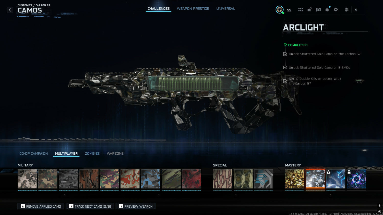 BO7 Elite Package 💣 15 Arclight Verified Camos 💥 15 Shattered Gold ⭐ Level 55 Equipped 🔗 Works on All Platforms 💼 Legit Handoff
