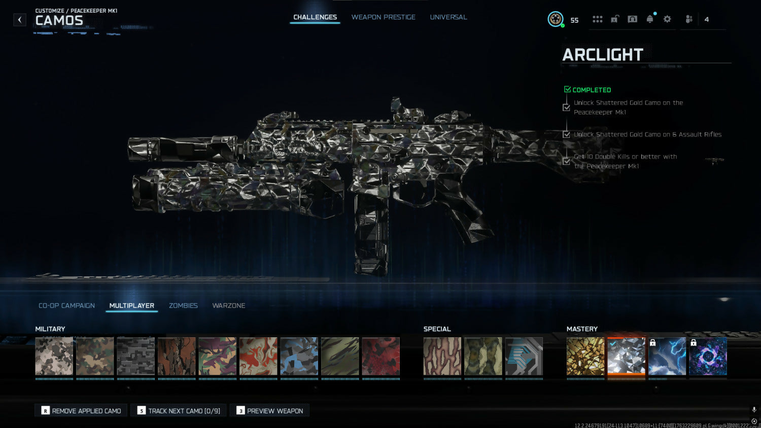 BO7 Premium Drop 💎 15 Arclight Custom Camos 🎆 15 Shattered Gold ⚔️ Level 55 Ready 🔗 Linkable to Steam/PSN/Xbox 📦 Clean Transfer