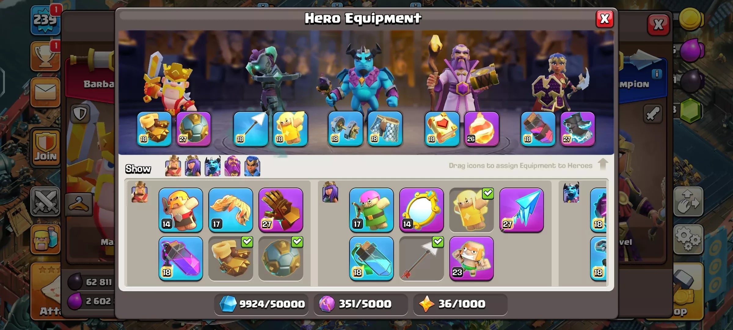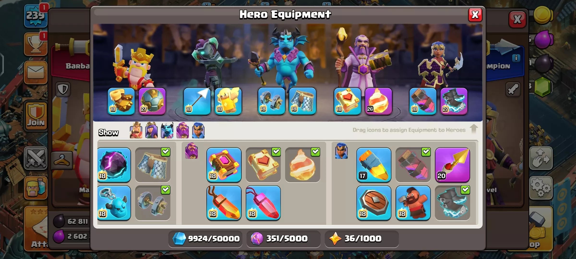 ✔ 26 Epic Equipments fully unlocked