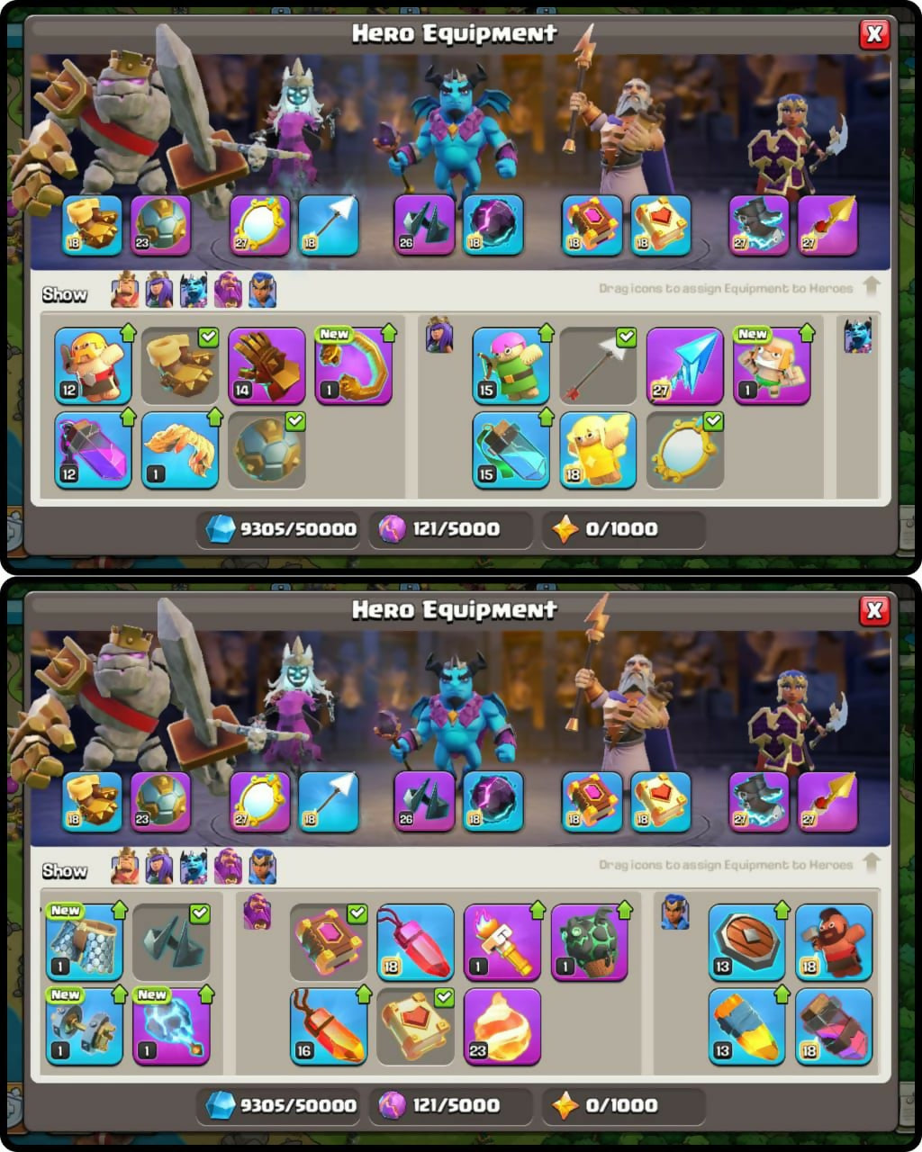 TH18 | METEOR GOLEM ROYAL CHAMPION AND 4 EPIC EQUIPMENTS MAX || LOADED 10,000 GEMS, 1397 CWL MEDALS || PREVIOUS UPDATE ALL 5 HEROES, WALLS AND DEFENSE MAX TH17 XP 212 || 12 SKINS, 13/13 EPICS // GAUNTLET 14, ARROW 27, FIREBALL 23, ROCKET SPEAR 27, SPIKY BALL 23, MAGIC MIRROR 27, LAVALOON PUPPET, ELECTRO BOOST 27, SNAKE BRACELET, ACTION FIGURE, DARK CROWN 26, HEROIC TORCH, METEOR STAFF