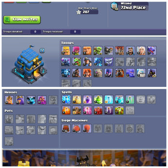 TH12 Near Max | XP 117 | Heroes: BK54 : AQ58 : MP34 : GW22 | Fully Loaded Magic Items | Almost Max Laboratory | Instant Delivery | Android/iOS