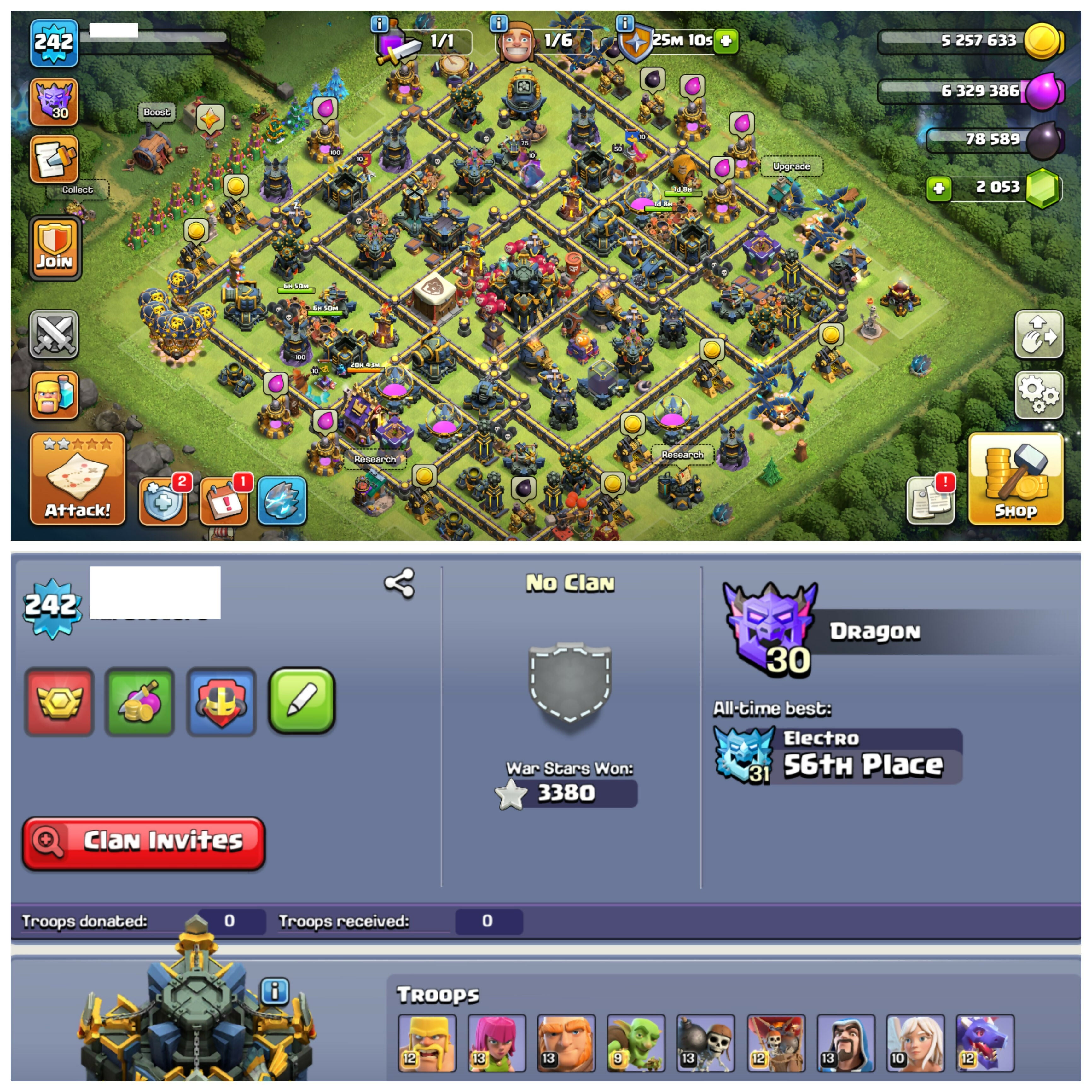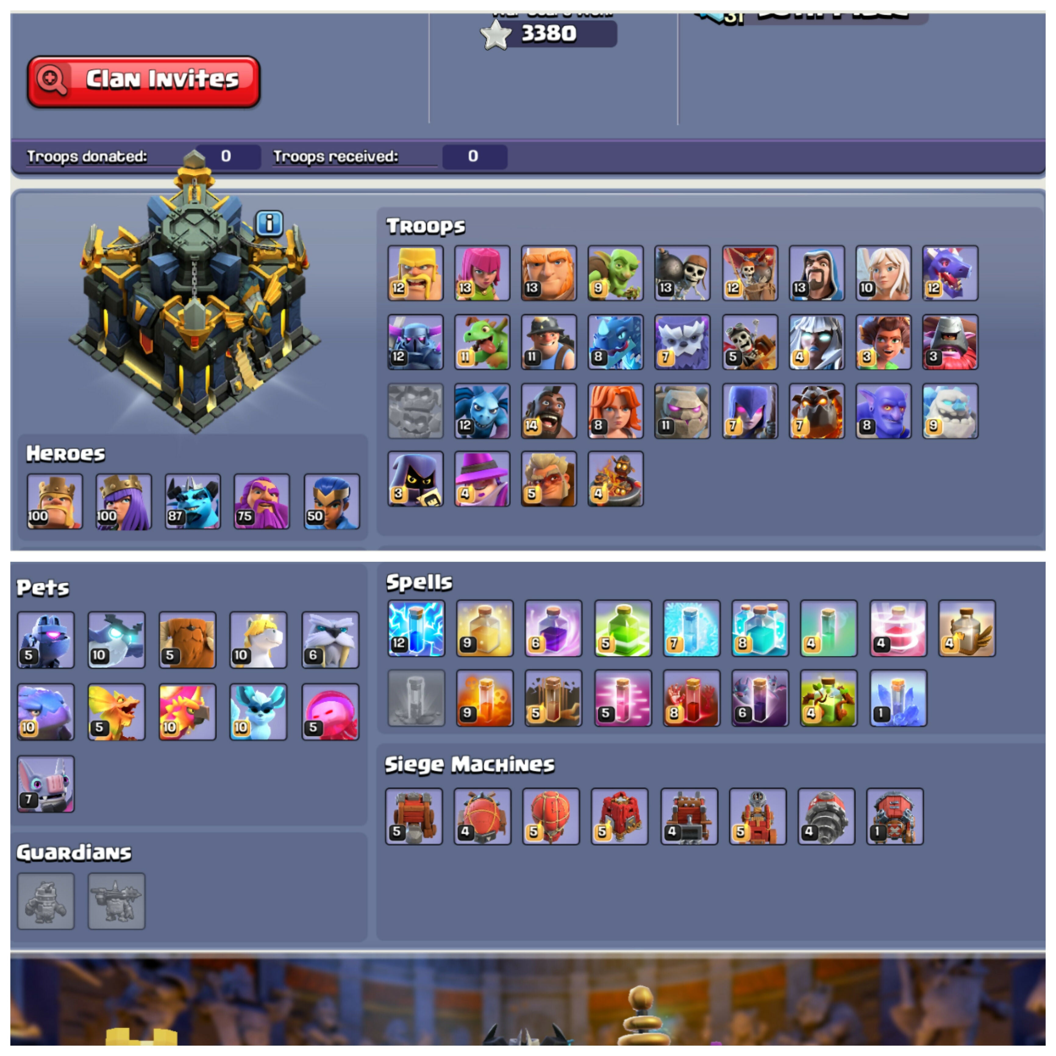 TH17 Max Account {TH18 Ready} | XP 242 : 12 Epic Equipments | Some Old CLash Trees , Loaded Magic Items & 7 Heroes Skins | Android/iOS