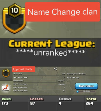 Name Change Clan ♦️ Level -10 ♦️ Rare Unranked ♦️ Set customers favourite name