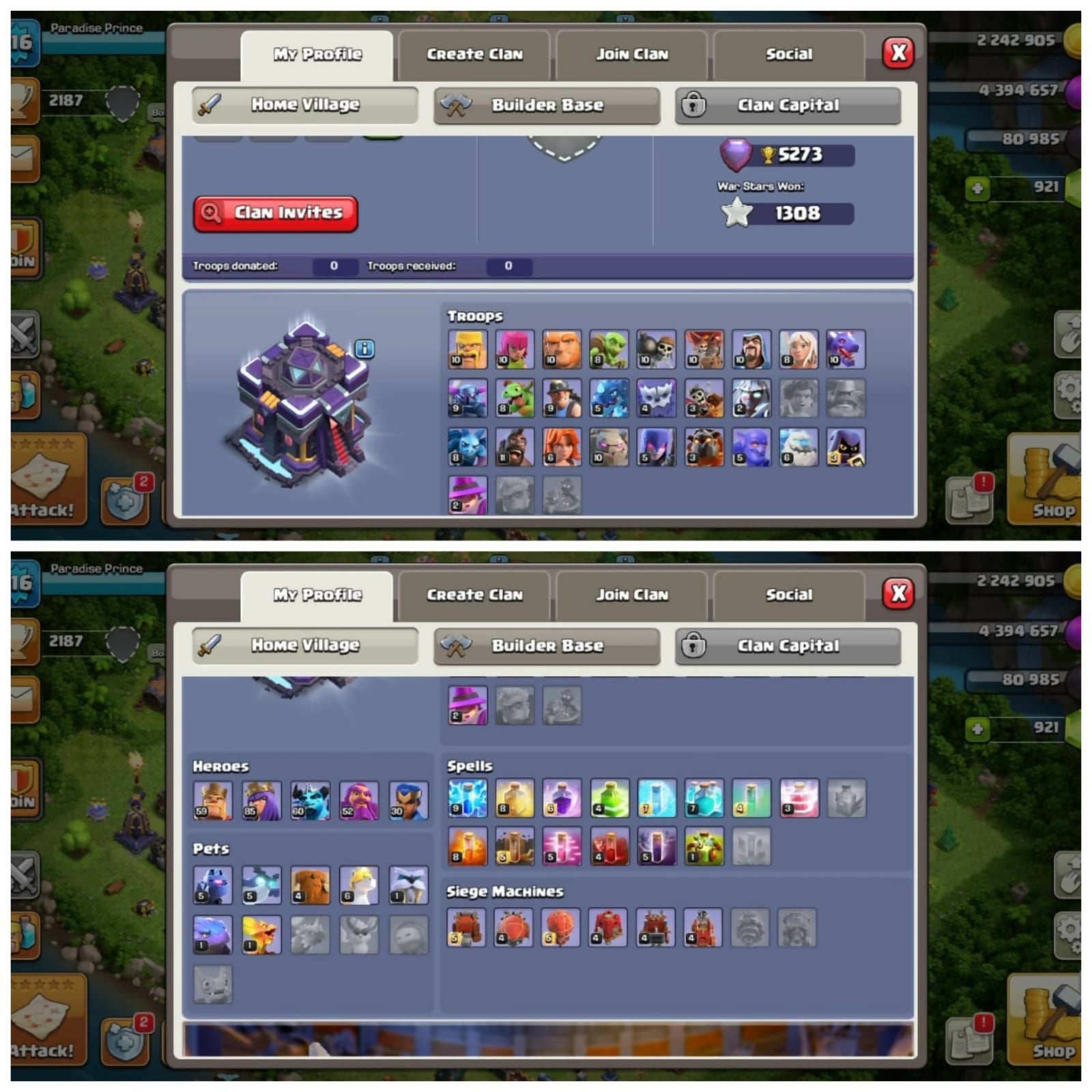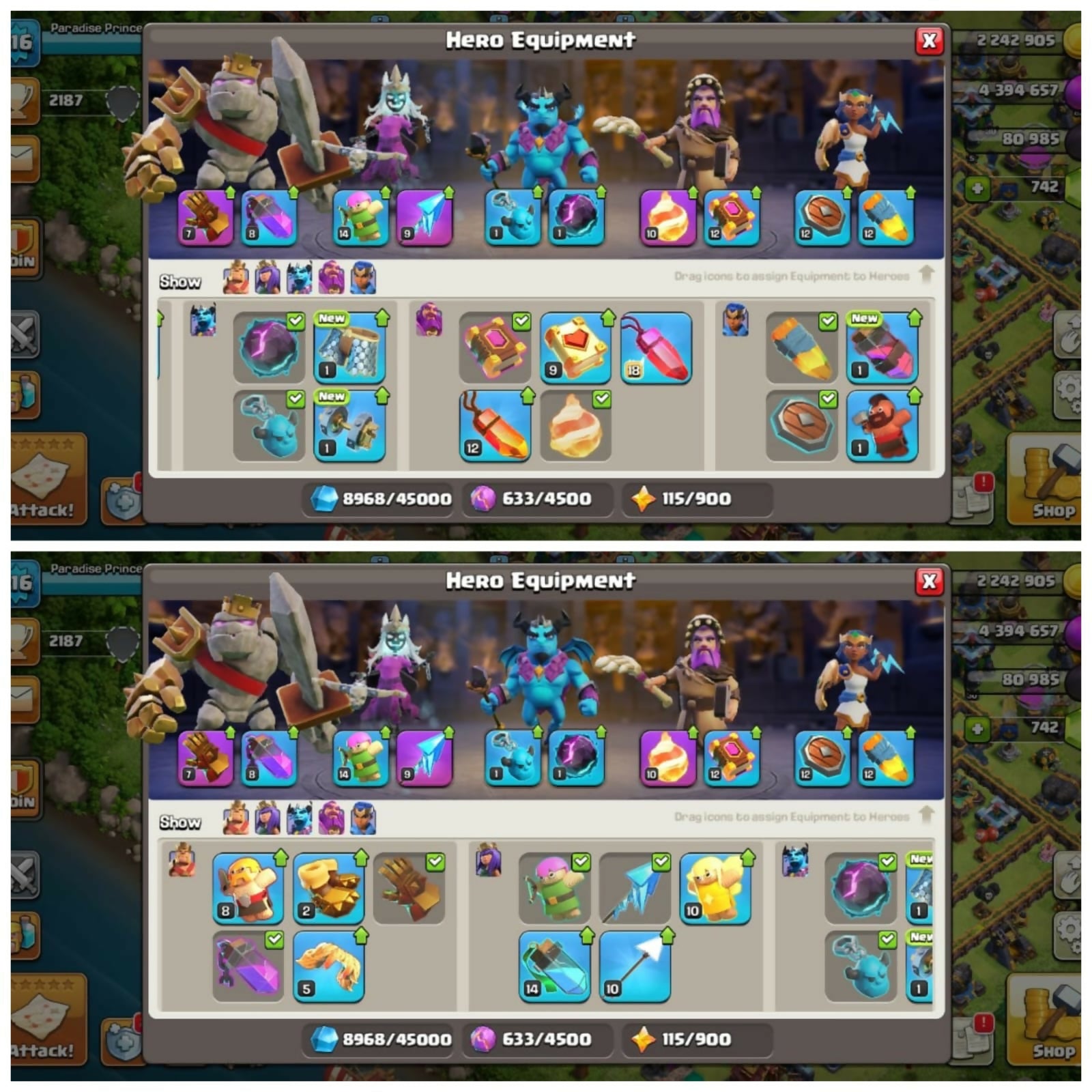 โจ [3 HERO'S SKINS] TH15 ๐ฅ XP 216 ๐งฟ 3 EPIC EQUIPMENTS (1 MAX) ๐ฅ MAX DEFANCE & ARMY ๐ฐ OVERPOWER BASE ๐ 921 GEMS ๐ค 4619 RAID MEDALS โก DECENTL HERO'S ๐ฅถ HEROES:- BK59 AQ85 MP60 GW52 RC30