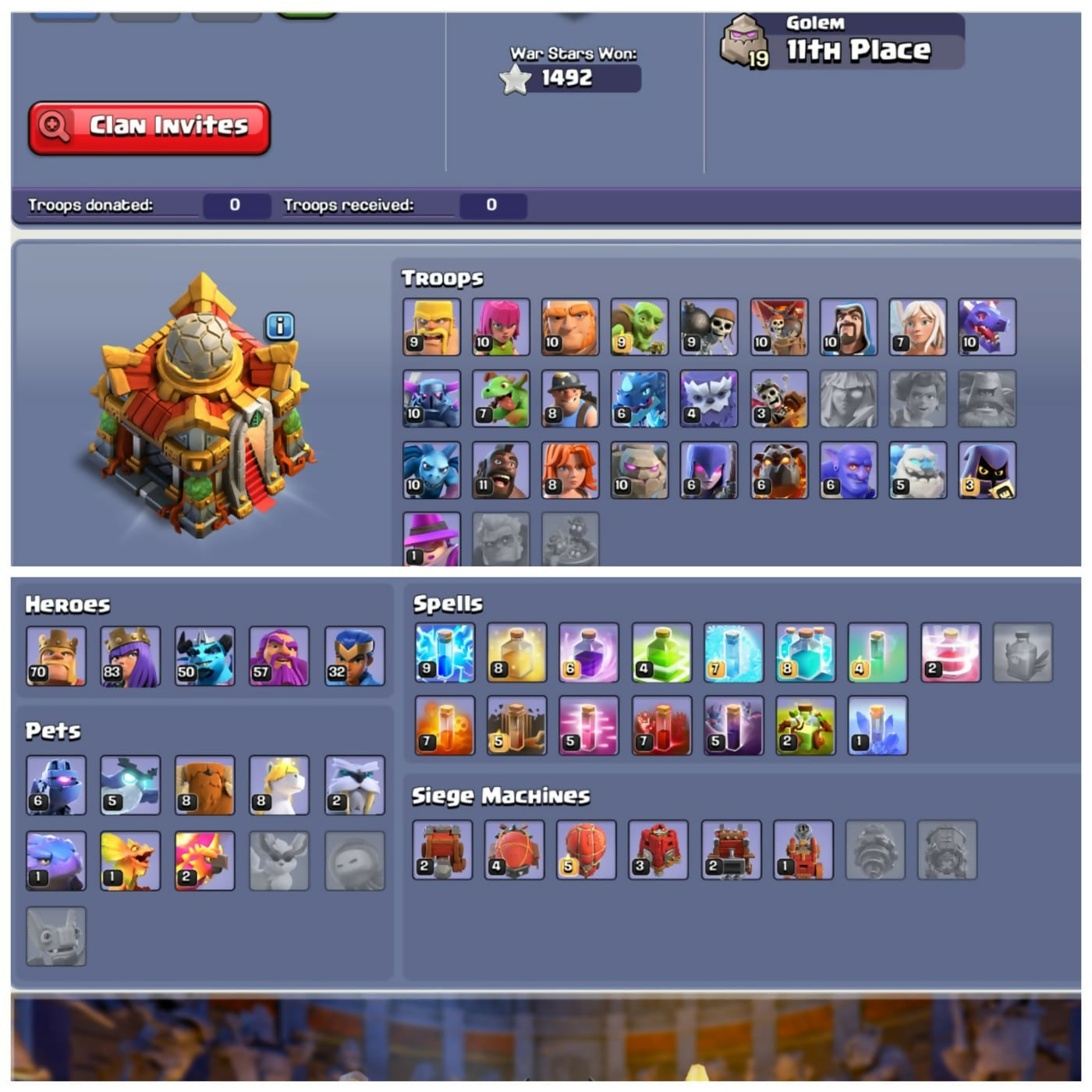 ✨ [6 EPIC EQUIPMENTS] TH16 🔥 XP 206 🧿 MAX DEFANCE & ARMY 🏰 OVERPOWER BASE 💎 528 GEMS 🤑 1492 WAR STARS ⚡ DECENTL HERO'S 🥶 HEROES:- BK70 AQ83 MP50 GW57 RC32