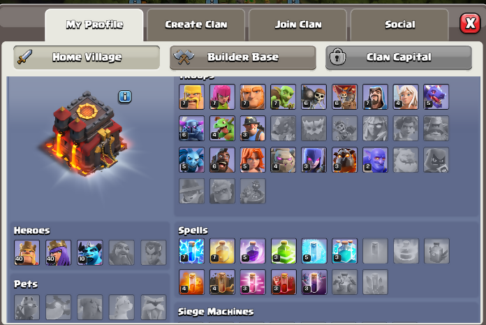 🌟 TH 10 🌟 BK40 AQ40 BM10 MP10 🌟 6763 GEMS 🌟 #80JPUVVY8 / Clash of Clans