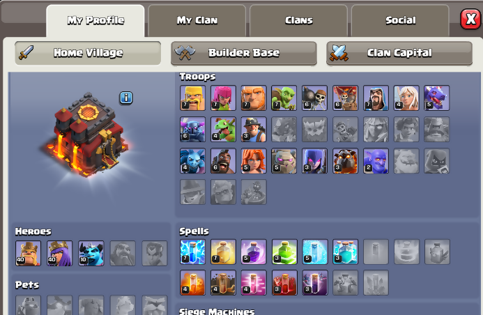 🌟 TH 10 🌟 BK40 AQ40 BM12 MP10 🌟 424 GEMS 🌟 #99UULUR8Y / Clash of Clans