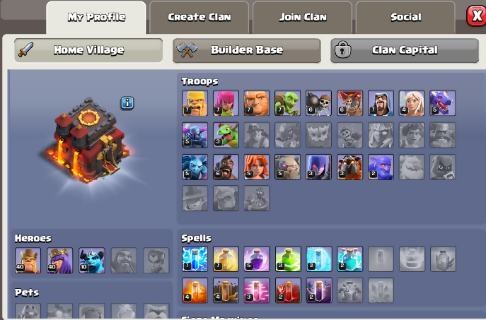 🌟 TH 10 🌟 BK40 AQ40 BM6 MP10 🌟 1589 GEMS 🌟 #PRC90YRU0 / Clash of Clans