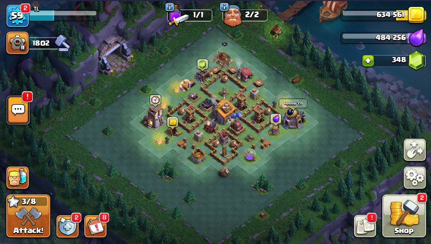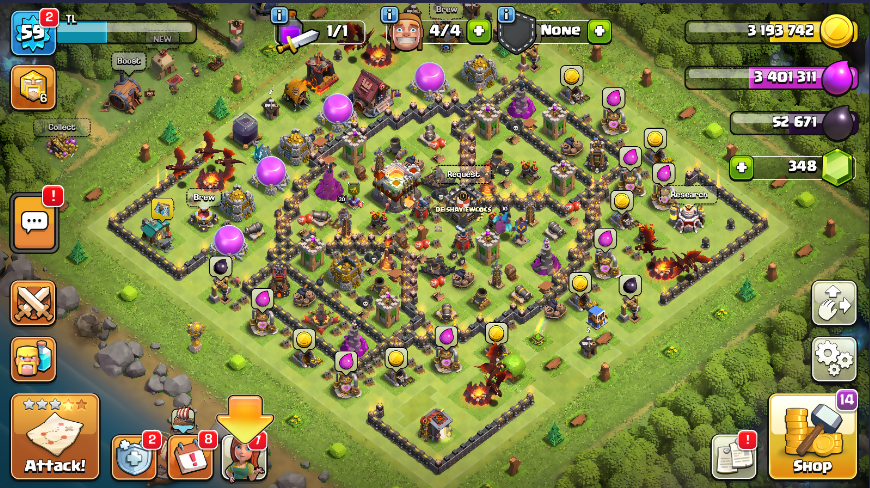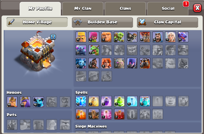 🌟 TH 11 🌟 BK30 AQ30 BM5 MP10 🌟 348 GEMS 🌟 #QVRJG08GR / Clash of Clans