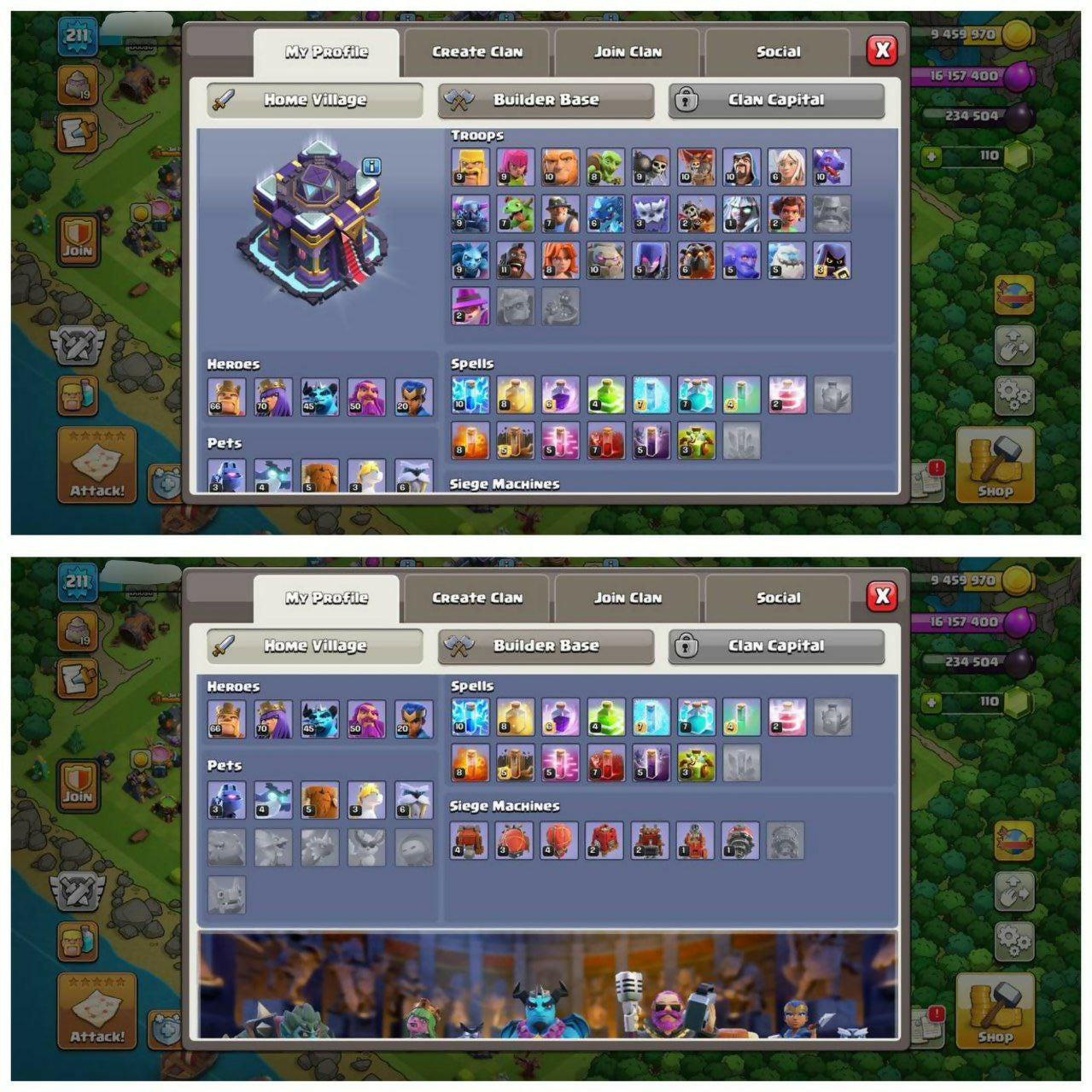 {70% DISCOUNT} TH15 HALF MAX ⚡️8 EPIC EQUIPMENT⚡️XP-211⚡️HERO 66-70-45-50-20⚡️FREE GEMS NAME CHANGE⚡️MAGIC ITEMS⚡️OP LAB⚡️INSTANT DELIVERY 🚚