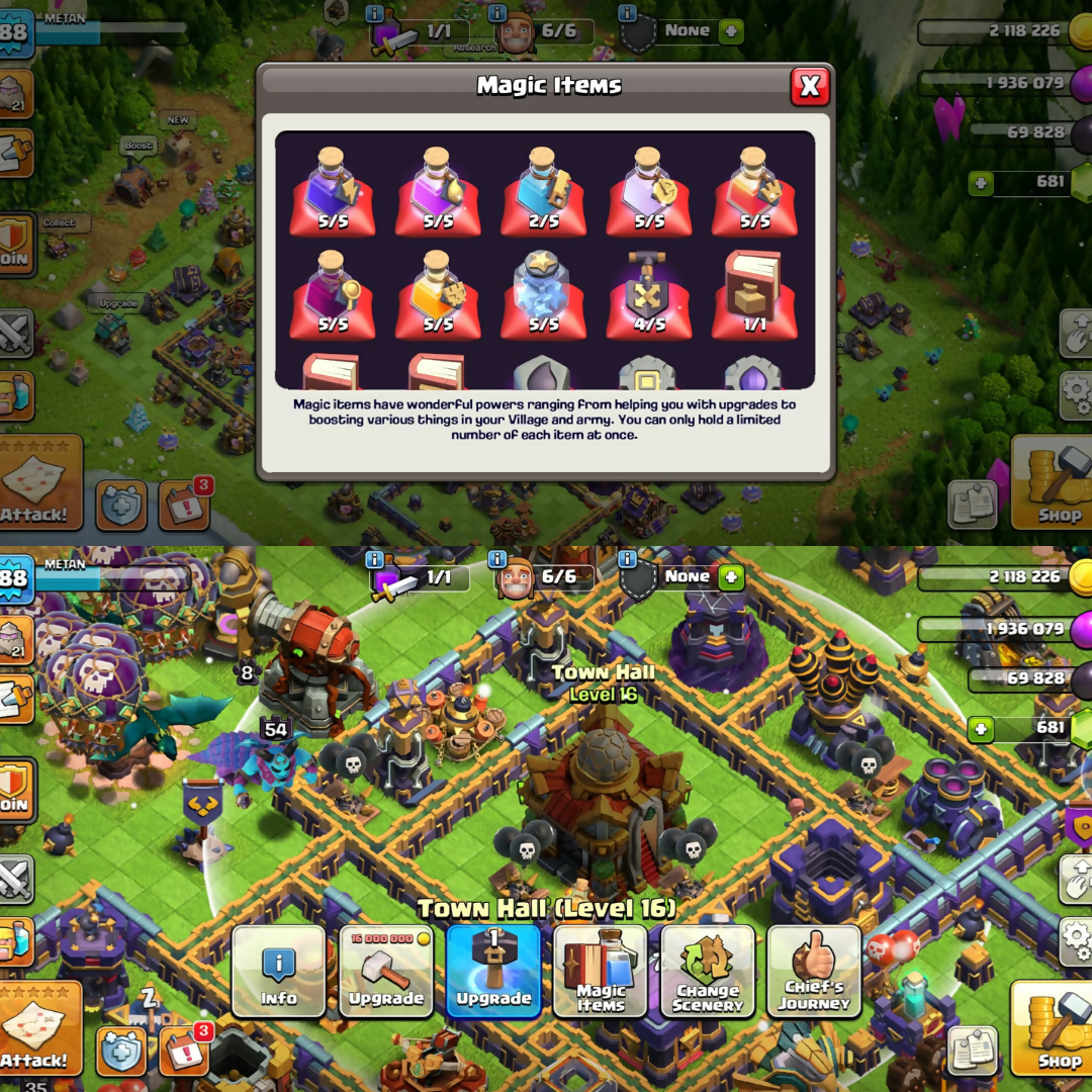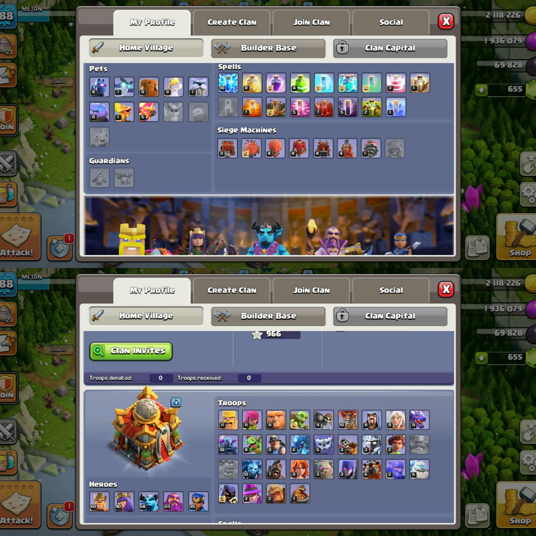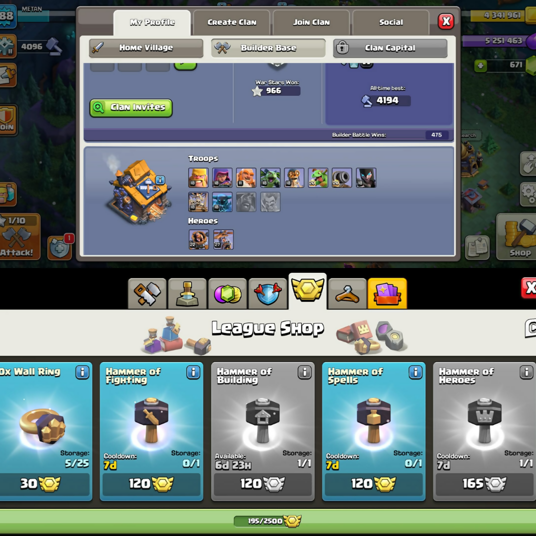 MAXED TH16➤ NEW TO TH-17➤XP-242➤MAX➤HEROES:-70-95-54-70-45➤NICE PETS➤950 war stars ➤7Epic ➤200 CWL ➤magic items ➤NC yes ➤ INSTA DELI