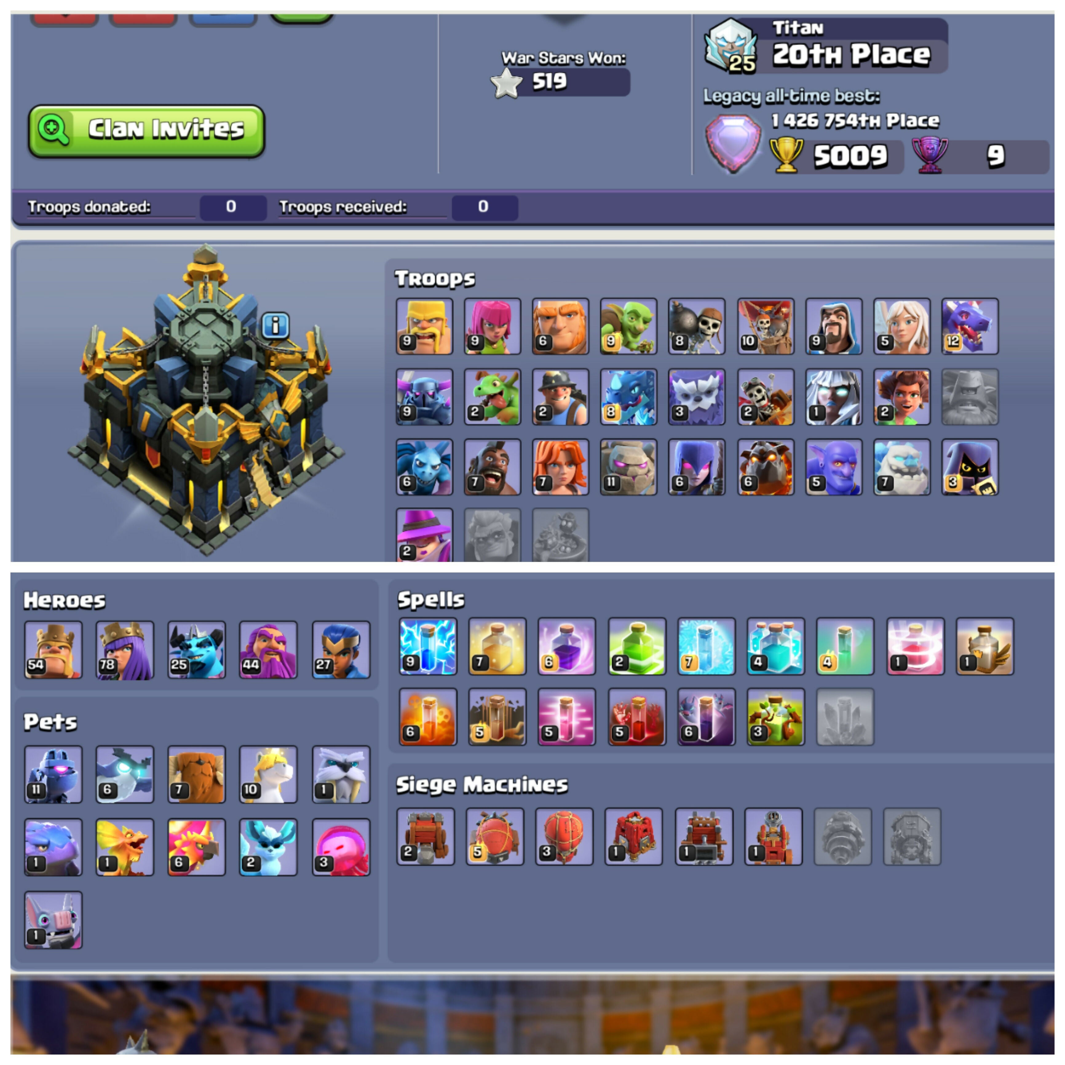 TH17 Crown Edition | High Smart Upgrades | Heroes: BK54 : AQ78 : MP25 : GW44 : RC27 | 5 Epic Equipments , High Troops Lvls | Android/iOS