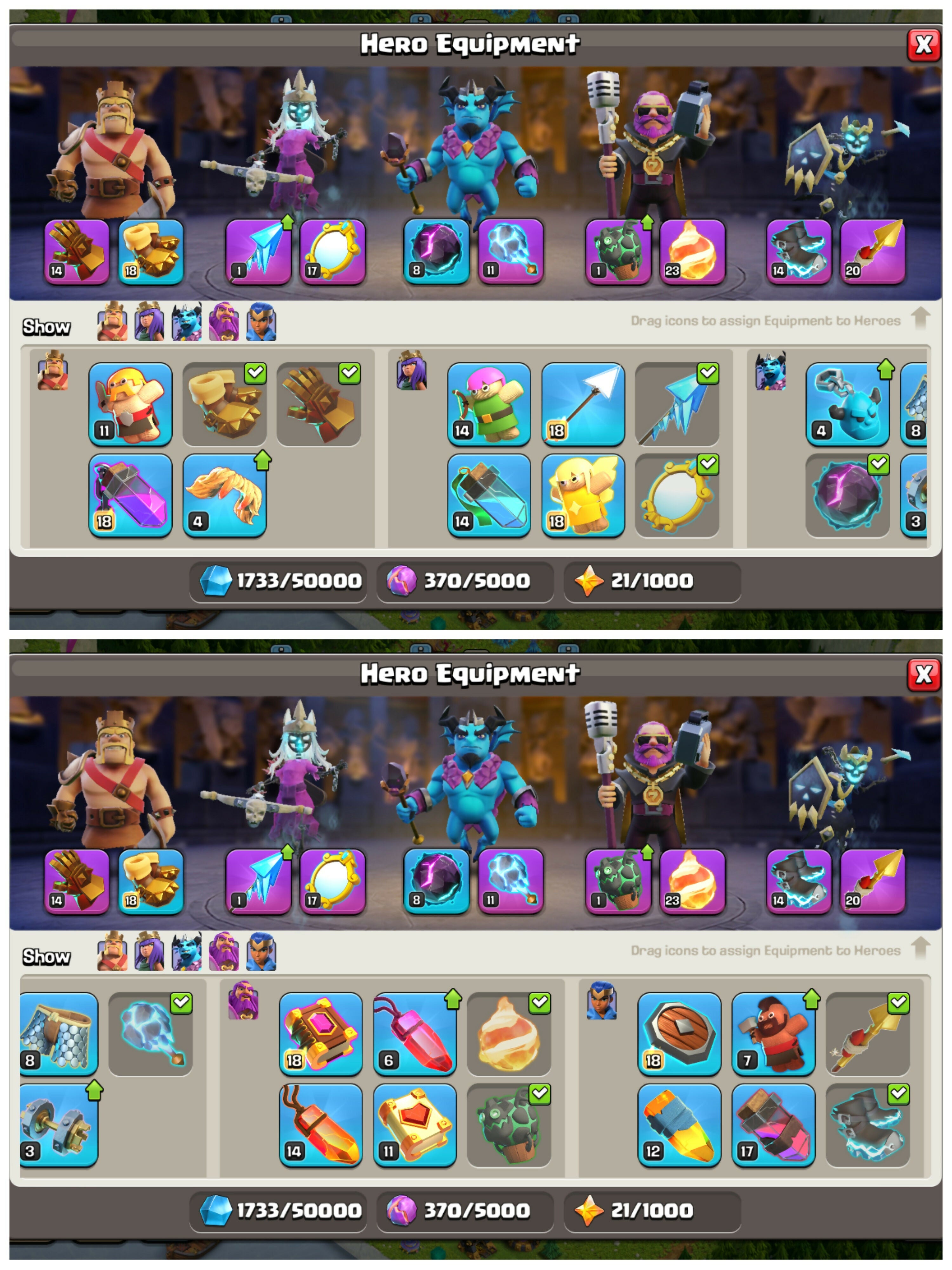 TH17 Flame Emperor | 8 Epic Equipments | Heroes: BK88 : AQ95 : MP63 : GW70 : RC45 | 6 Heroes Skins & Overpowered Laboratory | Android/iOS