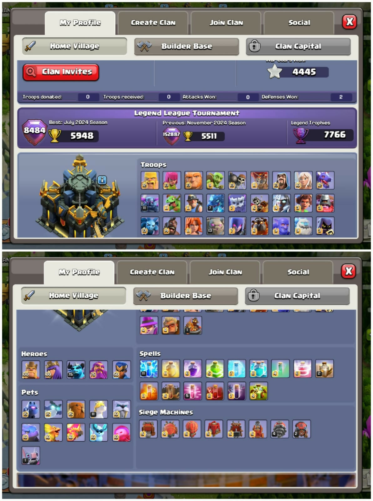 TH17 NEARMAX HEROES [100-100-75-75-50] 9 EPIC EQUIPMENTS [4 MAX] 15 HERO SKINS 4K WARSTARS MAGIC ITEMS INSTANT AND 100% ACCES TO ACCOUNT ✨