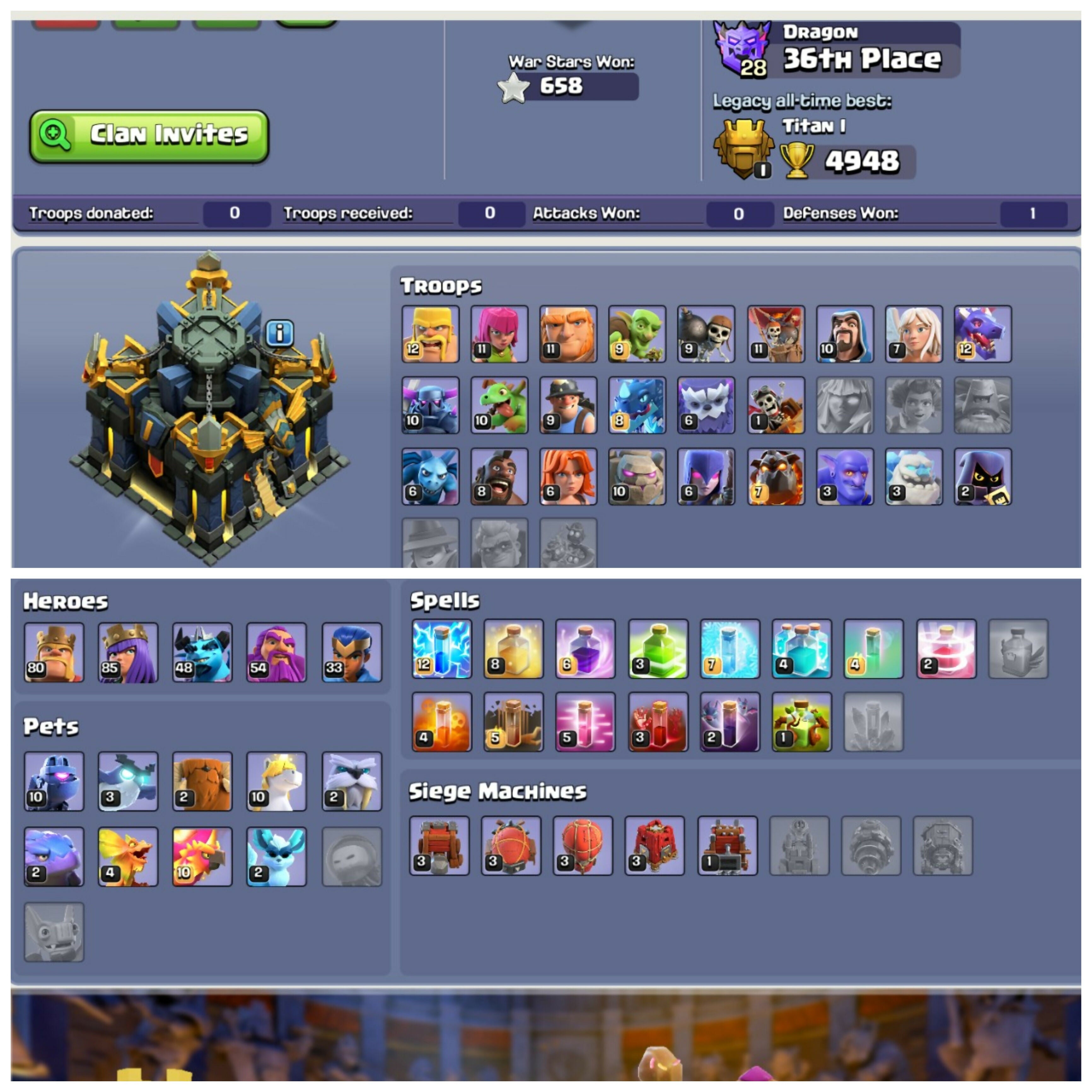 TH17 Power Loaded | Golden Aura | Heroes: BK80 : AQ85 : MP48 : GW54 : RC33 | Name Changeable & 4 Epic Equipments | Android/iOS
