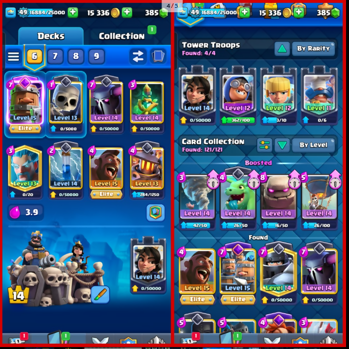 ☘️KT (14) ☘️ [13 MAX] ☘️49 XP?9 EVO ✨11 LVL 14 CARDS - 2 ELITE ✨9590 TROPHY ? ARENA 24 ? 121 CARDS✨ ? 6 YEARS BADGE ✨46 RARE EMOTES ✨[380+ GEMS