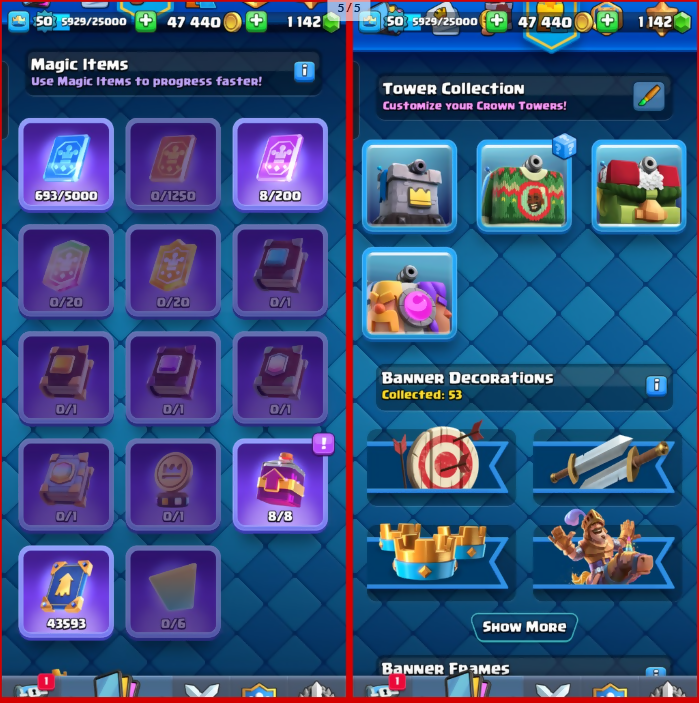 ☘️KT (14) ☘️ [17 MAX] ☘️50 XP?7 EVO ✨13 LVL 14 CARDS - 4 ELITE ✨12400 TROPHY ? Seasonal ARENA 3 ? 121 CARDS✨ ? 3 YEARS BADGE ✨53 RARE EMOTES ✨[1.1k+ GEMS