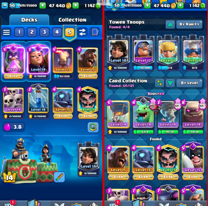 ☘️KT (14) ☘️ [17 MAX] ☘️50 XP💥7 EVO ✨13 LVL 14 CARDS - 4 ELITE ✨12400 TROPHY 🏆 Seasonal ARENA 3 🔥 121 CARDS✨ 🔥 3 YEARS BADGE ✨53 RARE EMOTES ✨[1.1k+ GEMS