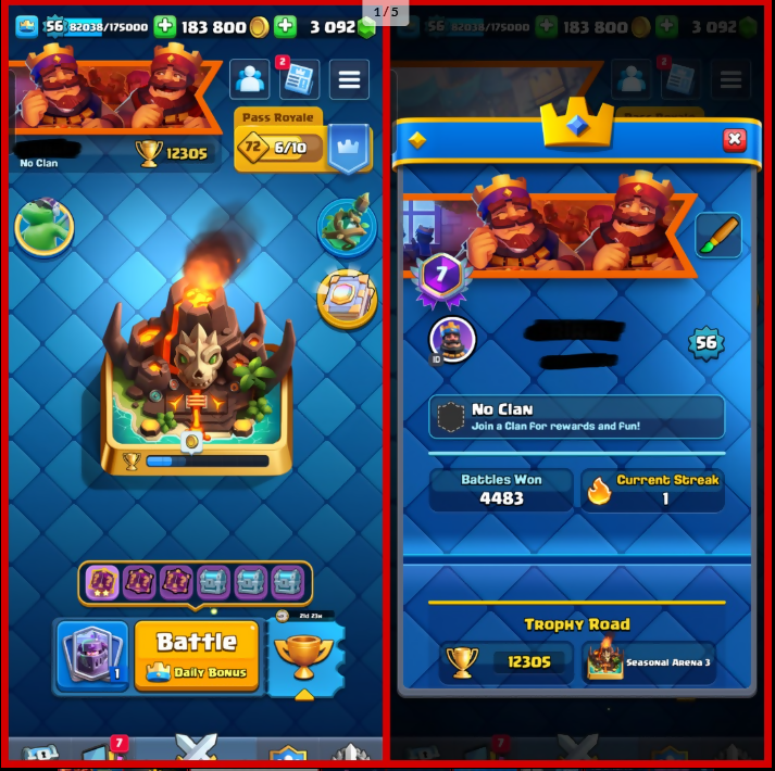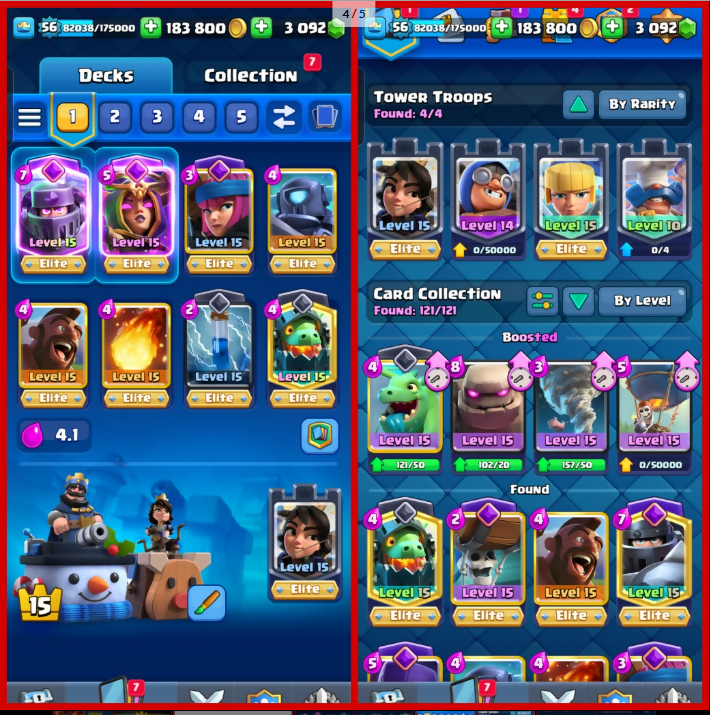 ☘️KT (15) ☘️ [36 MAX] ☘️56 XP?15 EVO ✨25 LVL 14 CARDS - 11 ELITE ✨12300 TROPHY ?Seasonal ARENA 3 ? 121 CARDS✨ ? 7 YEARS BADGE ✨48 RARE EMOTES ✨[3k+ GEMS