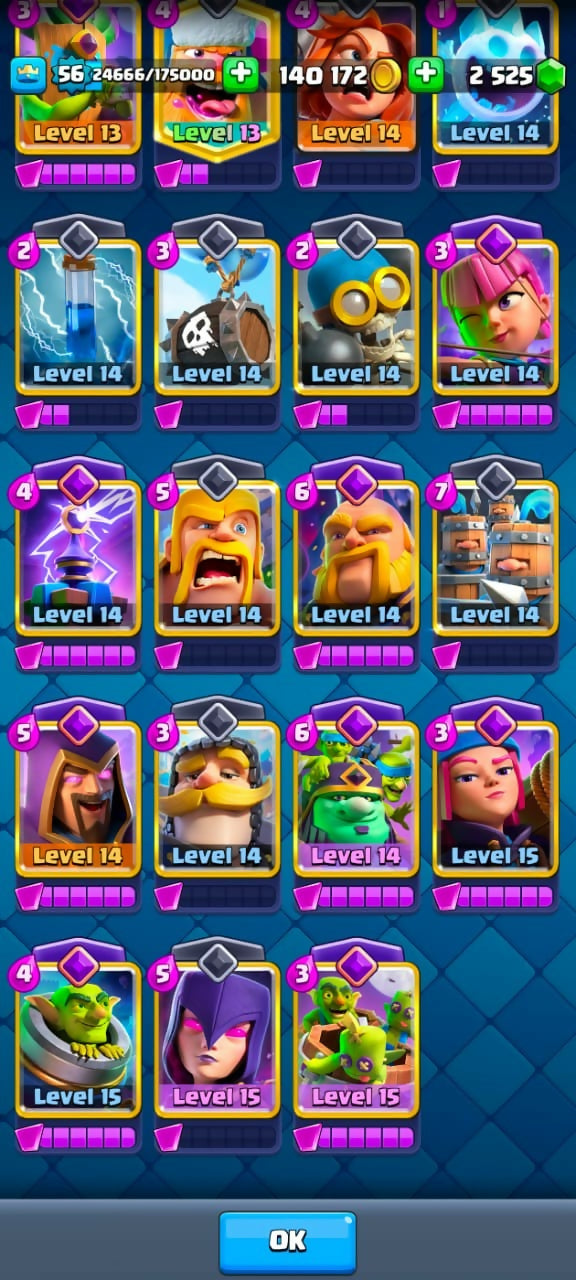 ☘️KT (15) ☘️ [40 MAX] ☘️56 XP?10 EVO ✨40 LVL 14 CARDS - 6 ELITE ✨10000 TROPHY ? 120 CARDS✨ ? 9 YEARS BADGE ✨45 EMOTES ✨[2500+ GEMS] COC AC INCULUDE
