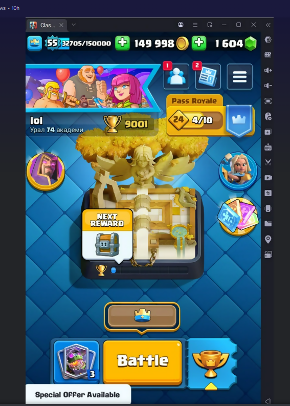 ♥️9001 TROPHY ⚡️ 55 LVL ⚡️ KT 15 ⚡️ 119 CARDS ♦️ EMOTE 59 ⚡️ #JR0990QG2 - TAG ACCOUNT ♥️ ♥️