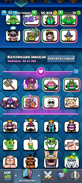 ✨Big Discount✨✨✨✨ 11000 12EVO 46 EMOJI (MIMIMI GOBLIN) ✨FULL DECK ✨ 2 years of Play ✨ arena 25, level 53, trophies 11050, cards 121, No