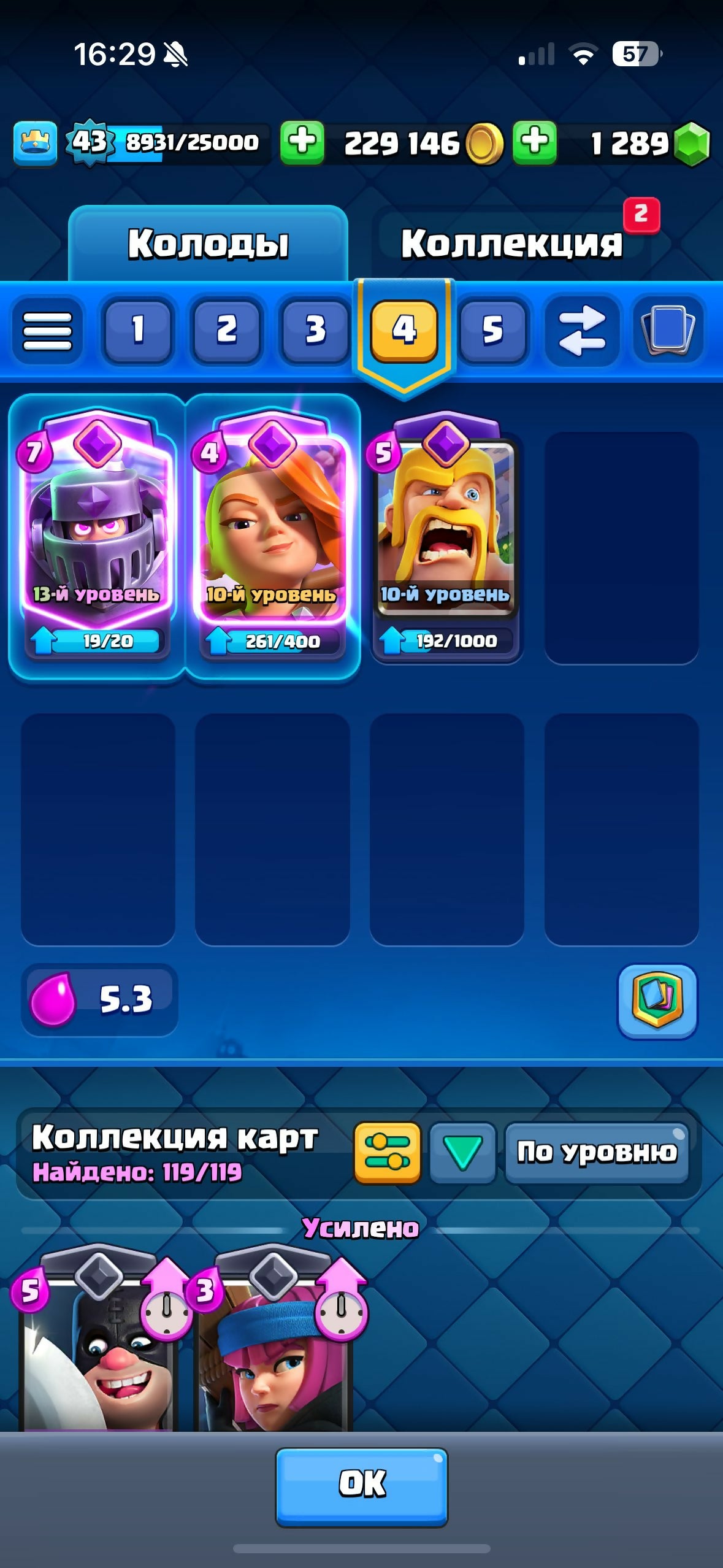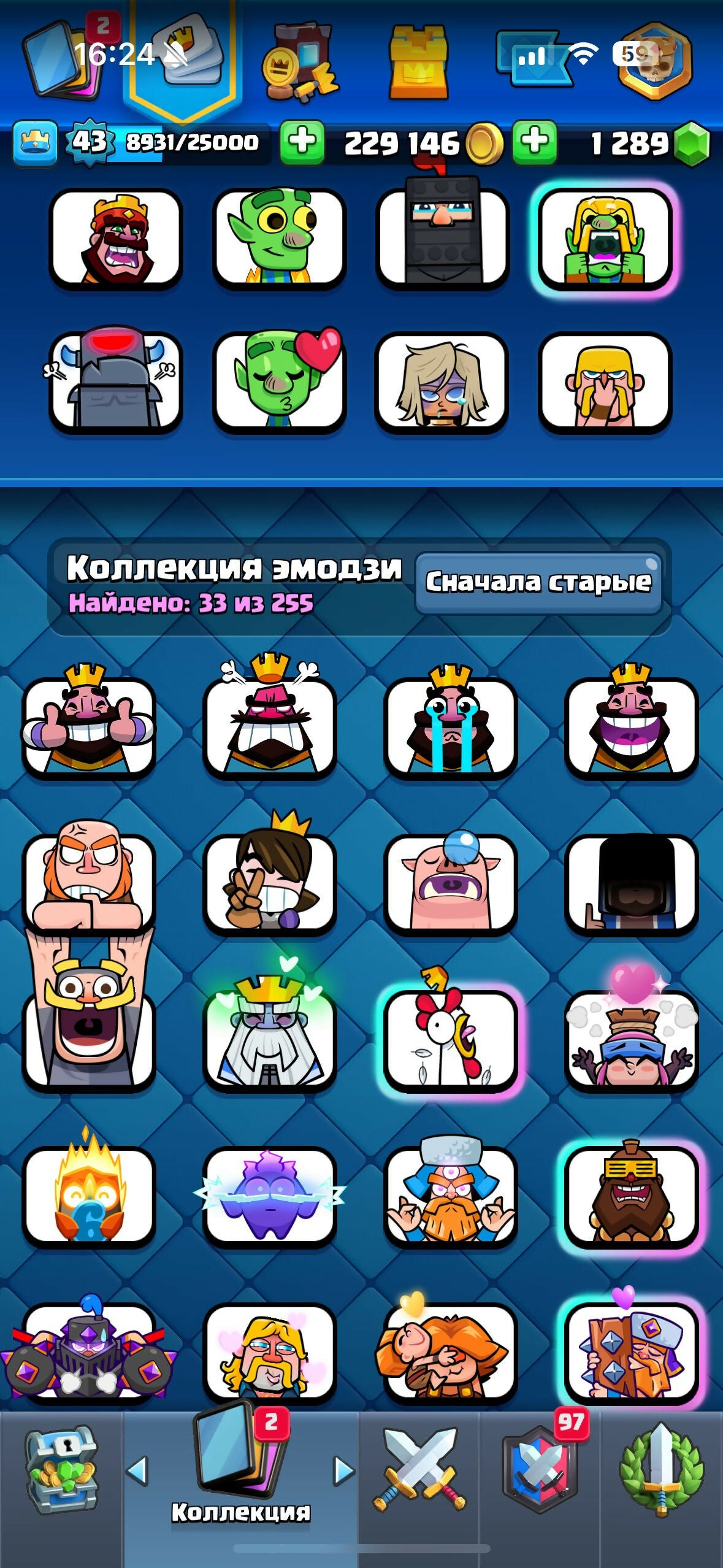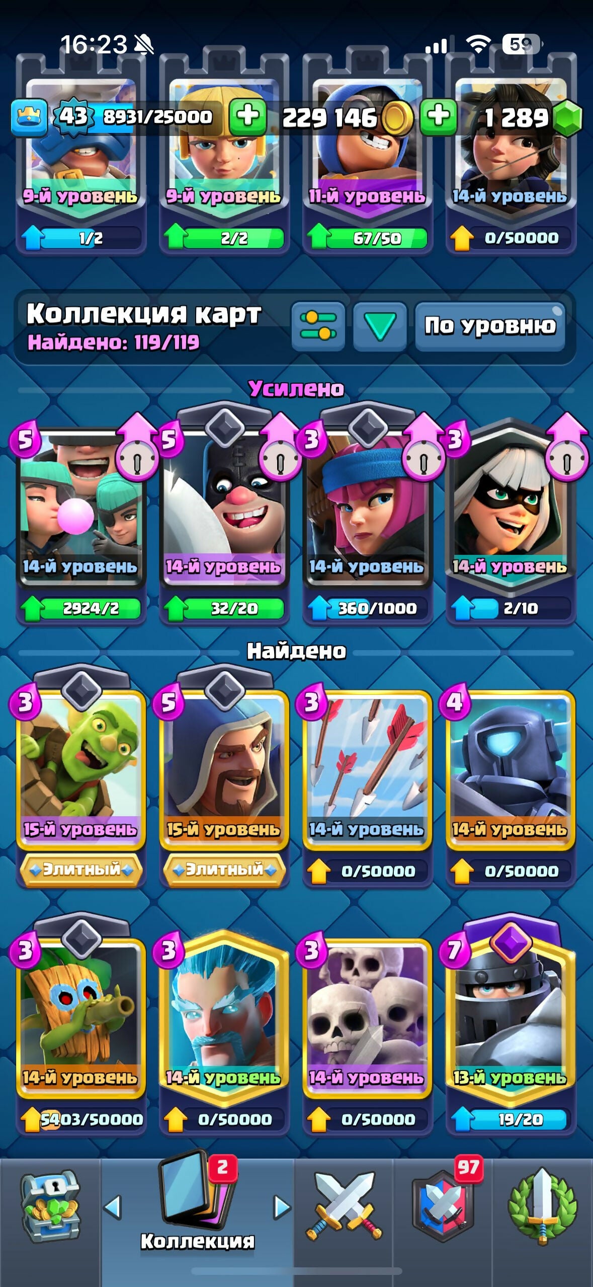 ✅✅✅Top Account 7500 cups 2 cards level 15 5 cards level 14 3 evolutions✅✅✅, arena 20, 43 level, trophies 7513, cards 119, legendary cards 18, Yes
