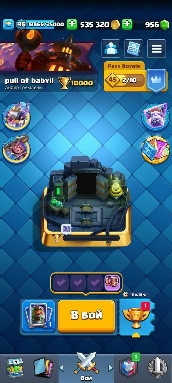 ✨Big Discount✨✨✨10000 CUPS✨✨ ✨10 EVOLUTIONS✨ ✨ emoji✨All cards., arena 25, 46 level, trophies 10000, cards 121, No